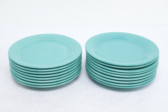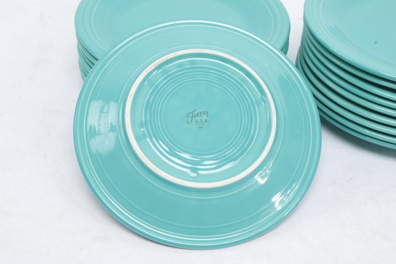 17pc Fiesta Blue Teal Dinner Plates in very good condition. See pictures carefully for details on size and condition.