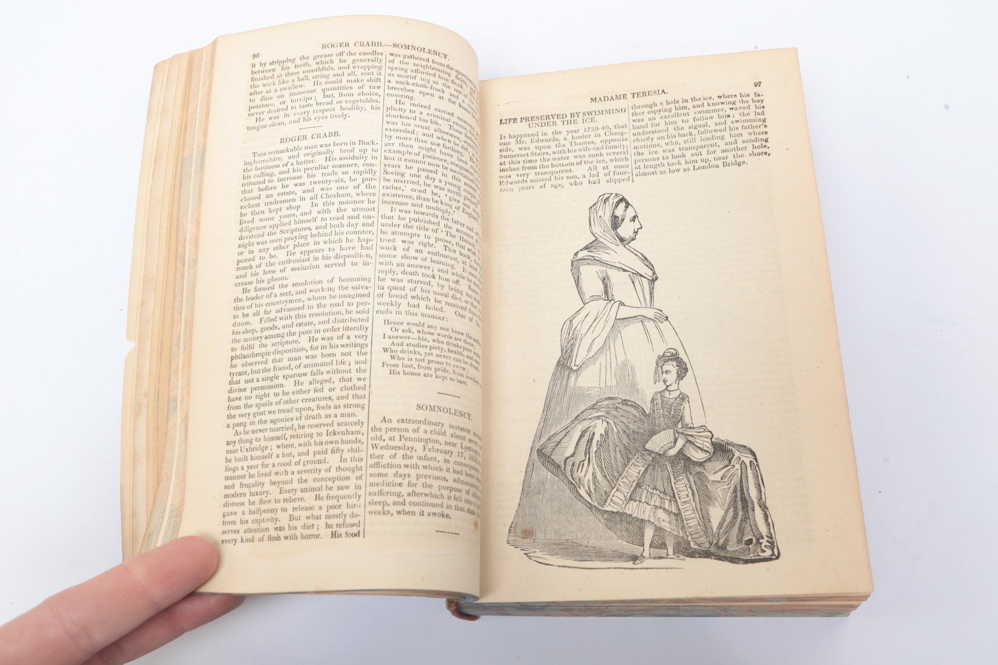 London: G. H. Davidson, Peters Hill, Doctors’ Commons, on the south side of St. Paul’s, 1854. Vol. II. Illustrated with steel plate portraits, engravings, and wood-cuts. Lacking original cover. Frontispiece steel engraving of Mademoiselle de Beaumont, the Chevalier d’Eon, with additional engraved plates and woodcuts throughout. Moderate foxing and age toning, text generally sound. An entertaining mid-nnineteenth-century miscellany of trials, biographies, curiosities, and accounts of remarkable phenomena. Sold As Is