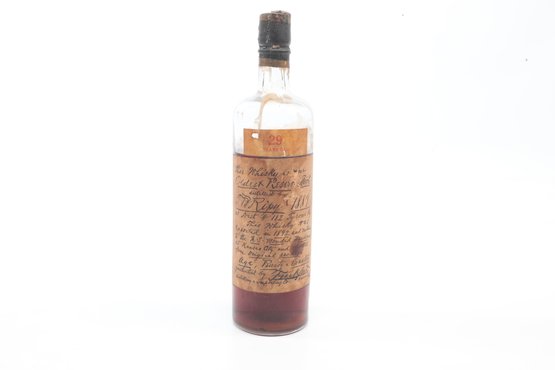 This 1889 bottle of whiskey has been kept in the same family, passed down for generations. It was exported by Frankfort Distillery & Importing Co. Kansas City. Bottle is still sealed but some evaporation has occurred due to age.