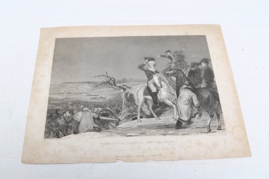 Engraved expressly for the New York Mirror, c 1840s. Edgewear, foxing. Washington crossing the Delaware. Evening previous to the battle of Trenton, Dec.25th, 1776. Engraving by J. N. Gimbrede in New-York Mirror, Sept. 24, 1842, after T. Sully.. View all photos FOR CONDITION before bidding.