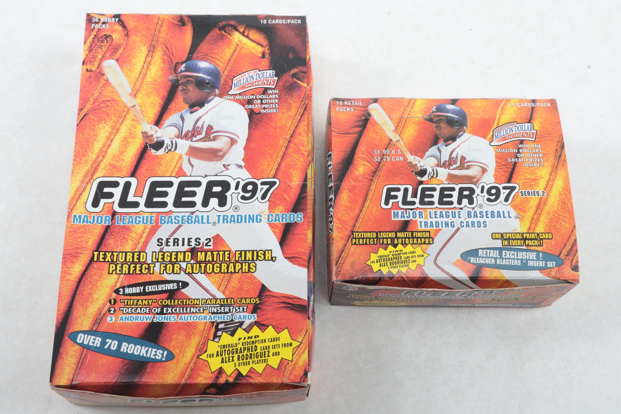 This lot of two 1997 Series two boxes are opened. The stars Hofers and inserts are still in the packs. The person opened them and put the cards right back. I did look for the David Ortiz rookies but they were not in there. There are roughly 12 to 14 insert cards per box with the Hall of Fame inserts left behind as well. THESE ARE NOT SEALED PACKS