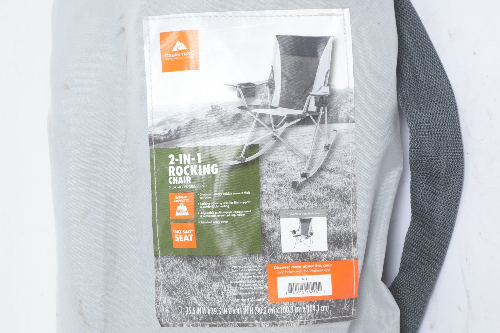 2-In-1 Ozark Trail Rocking Chair in carry bag. See pictures carefully for details on size and condition.