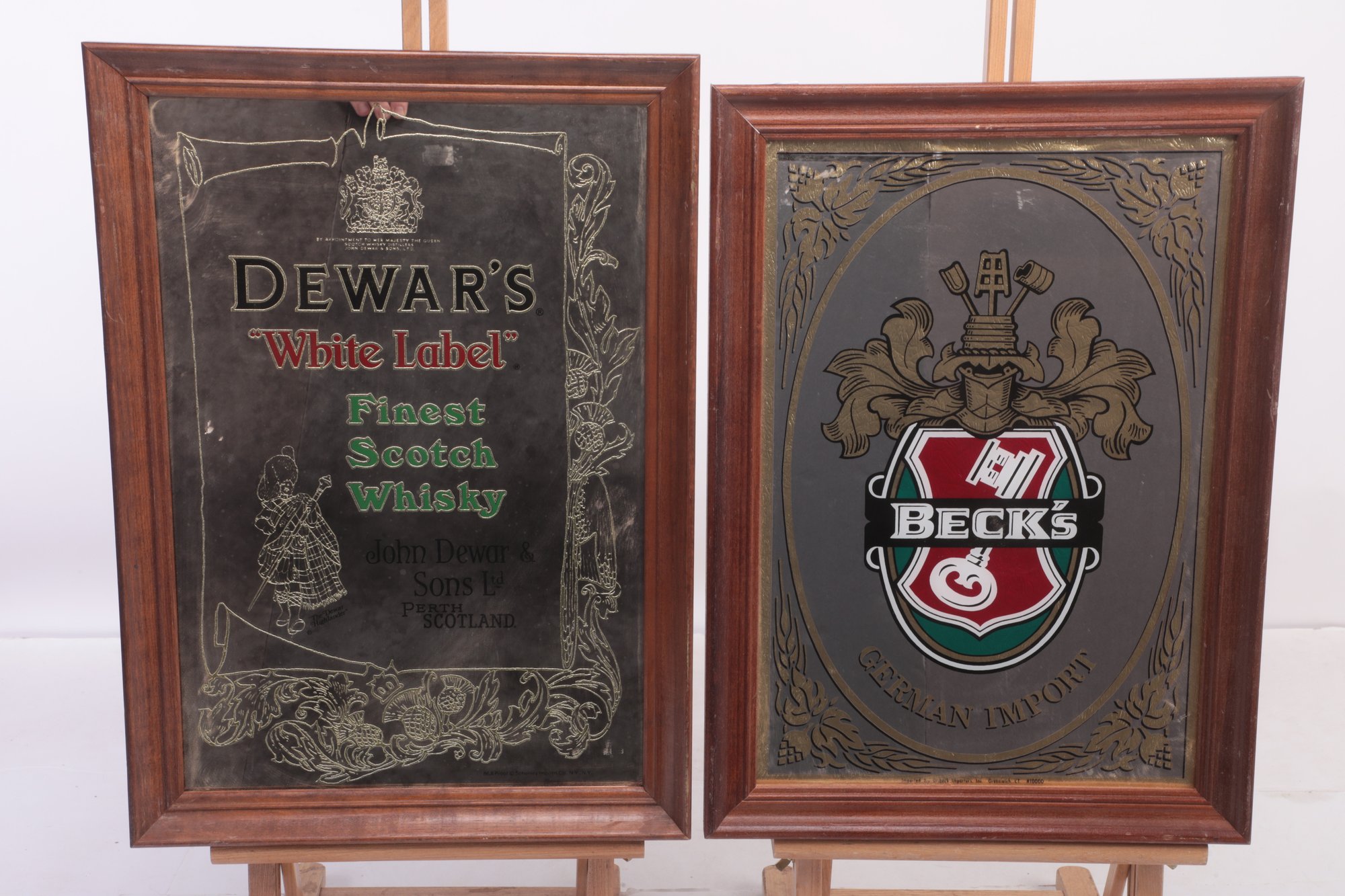 2 Vintage Bar Advertising Mirrors: Becks & Dewar's White Label