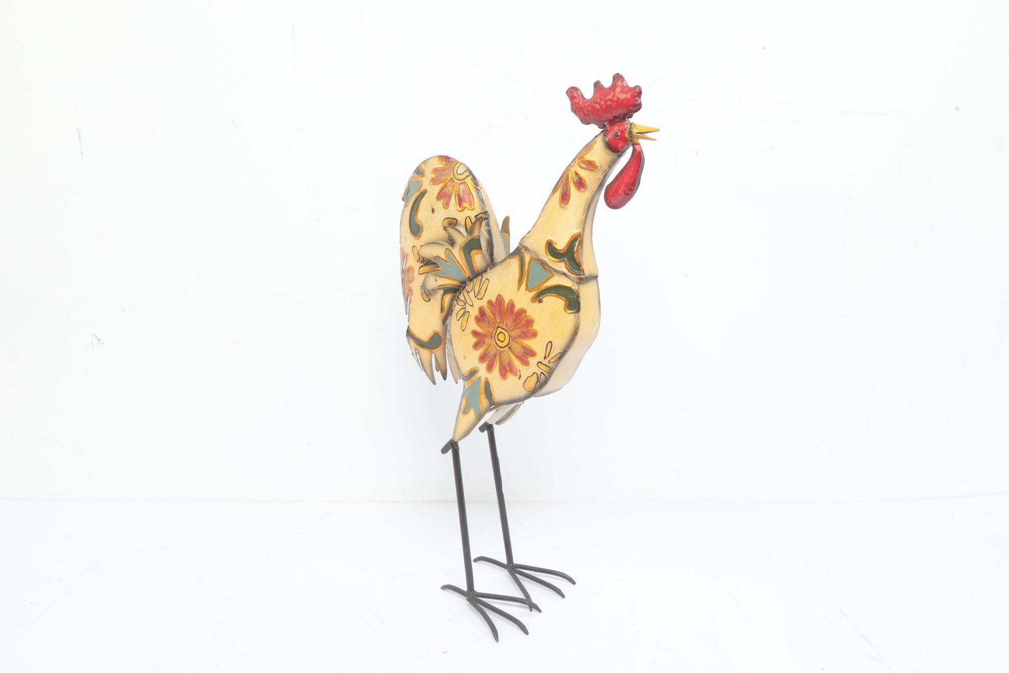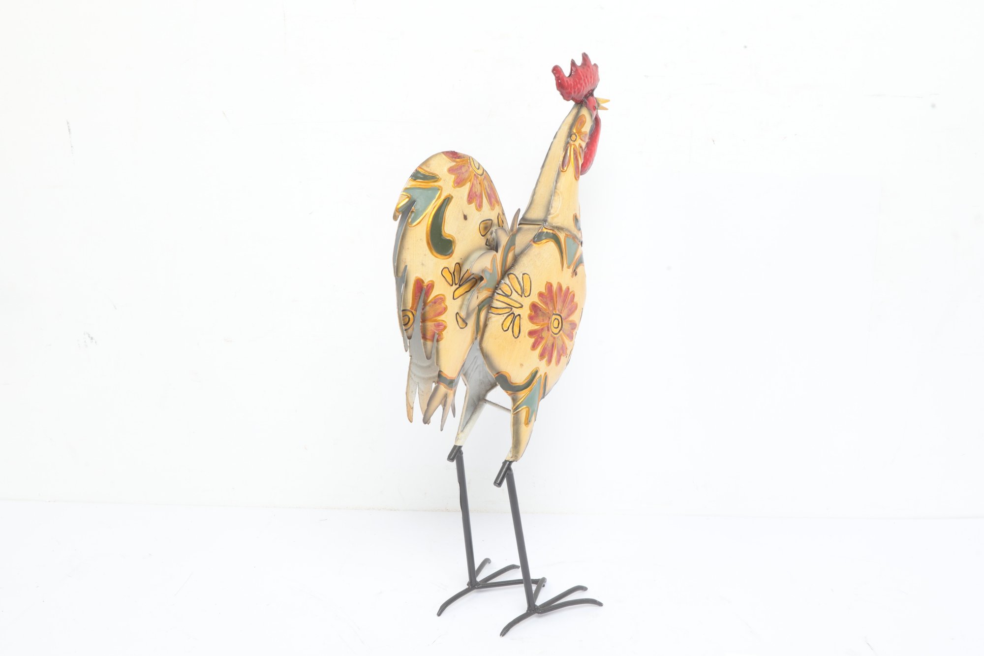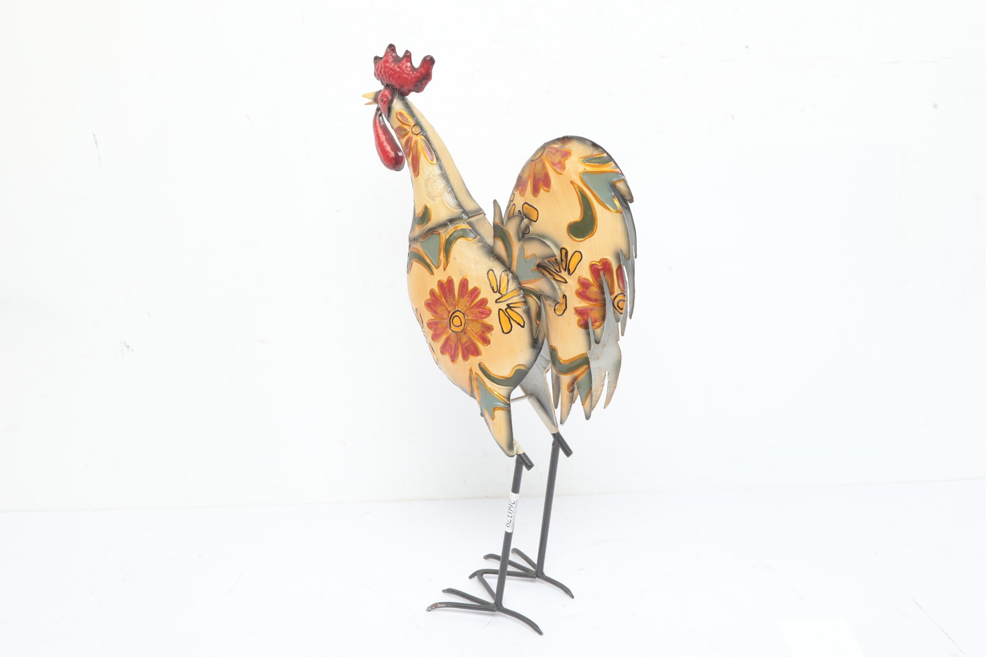 23" Tall Decorative Metal Rooster. Has some scratches and wear, see pictures carefully for details on size and condition.