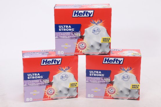 3 Boxes Of Hefty Ultra Strong Tall Kitchen Trash Bags, Lavender & Sweet Vanilla Scent, 13 Gallon, 80 Count