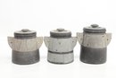 Unsure of the material they are made of (they are heavy & it appears to be some type of stone/cement/concrete). In overall good vintage condition, showing wear consistent with age, use & storage.