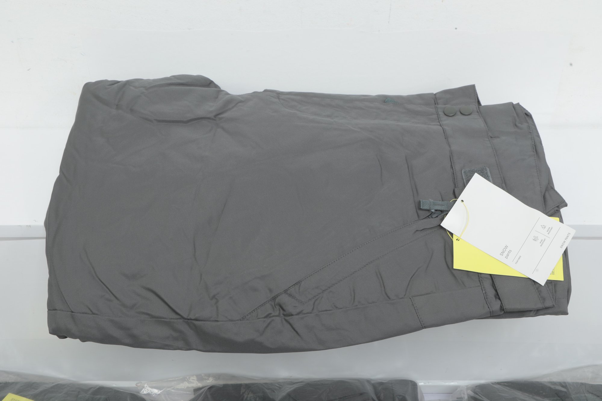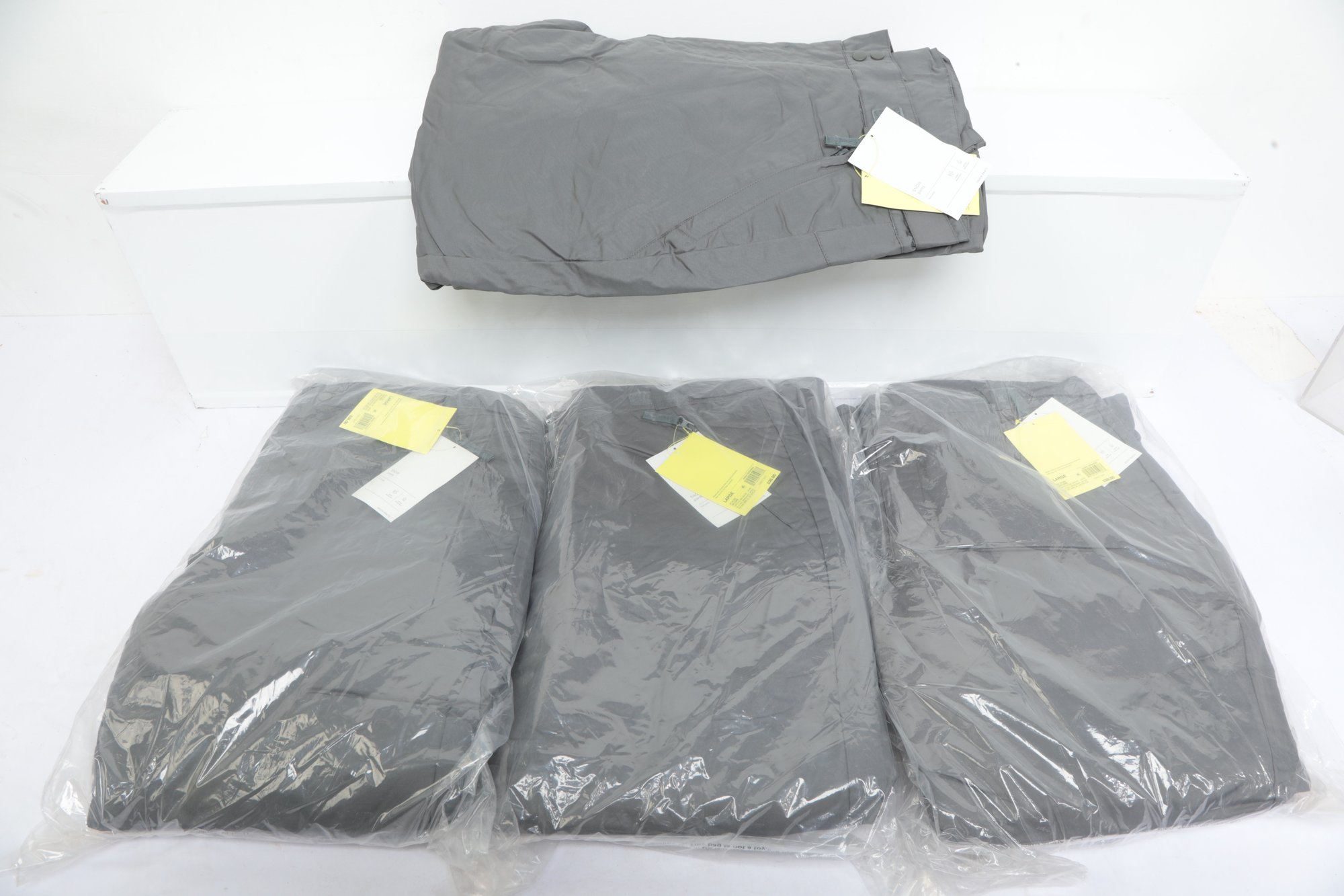 4 New Pairs Large Gray Snow Pants sealed in plastic with tags. See pictures carefully for details.