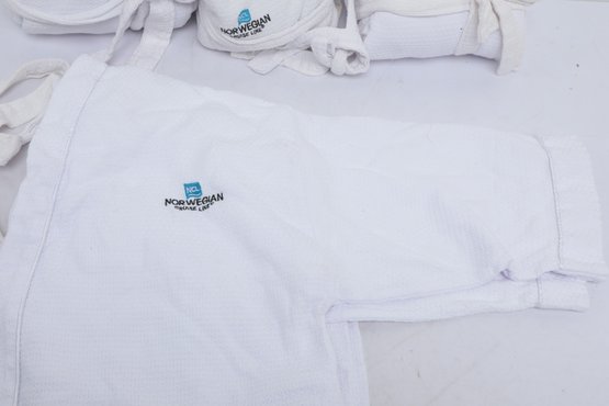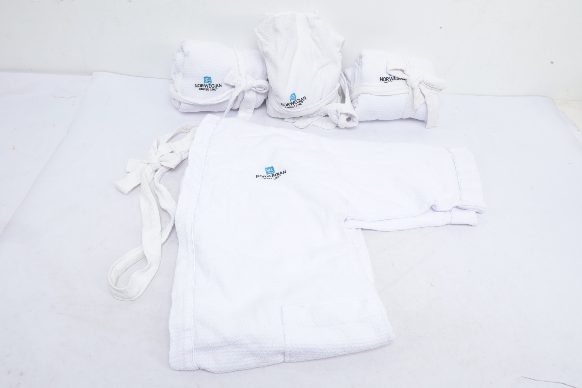 4pc Norwegian Cruise Lines Bath Robes. See pictures carefully for details on robes included and condition.