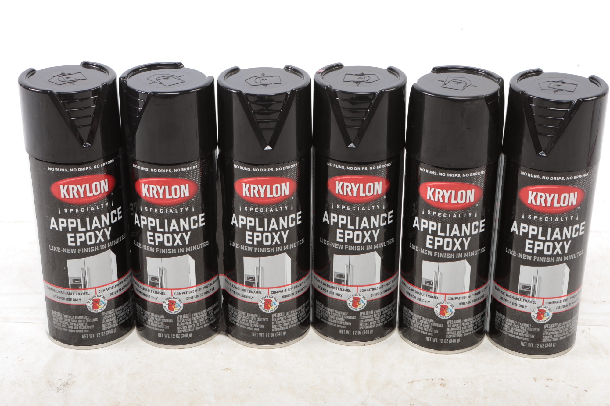 6 Krylon K03206777 Spray Paint, Black, Gloss, Solvent, 12 Oz