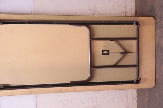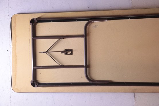 8' x 30" folding table. Table has some wear and corner damage from use and storage. See pictures carefully for details on size and condition.