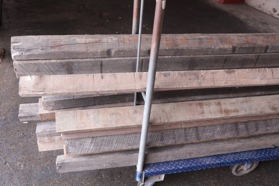 8ft Long Flatbed Load Bearing Riser Boards, believed to be white oak. See pictures carefully for details on contents included and condition.