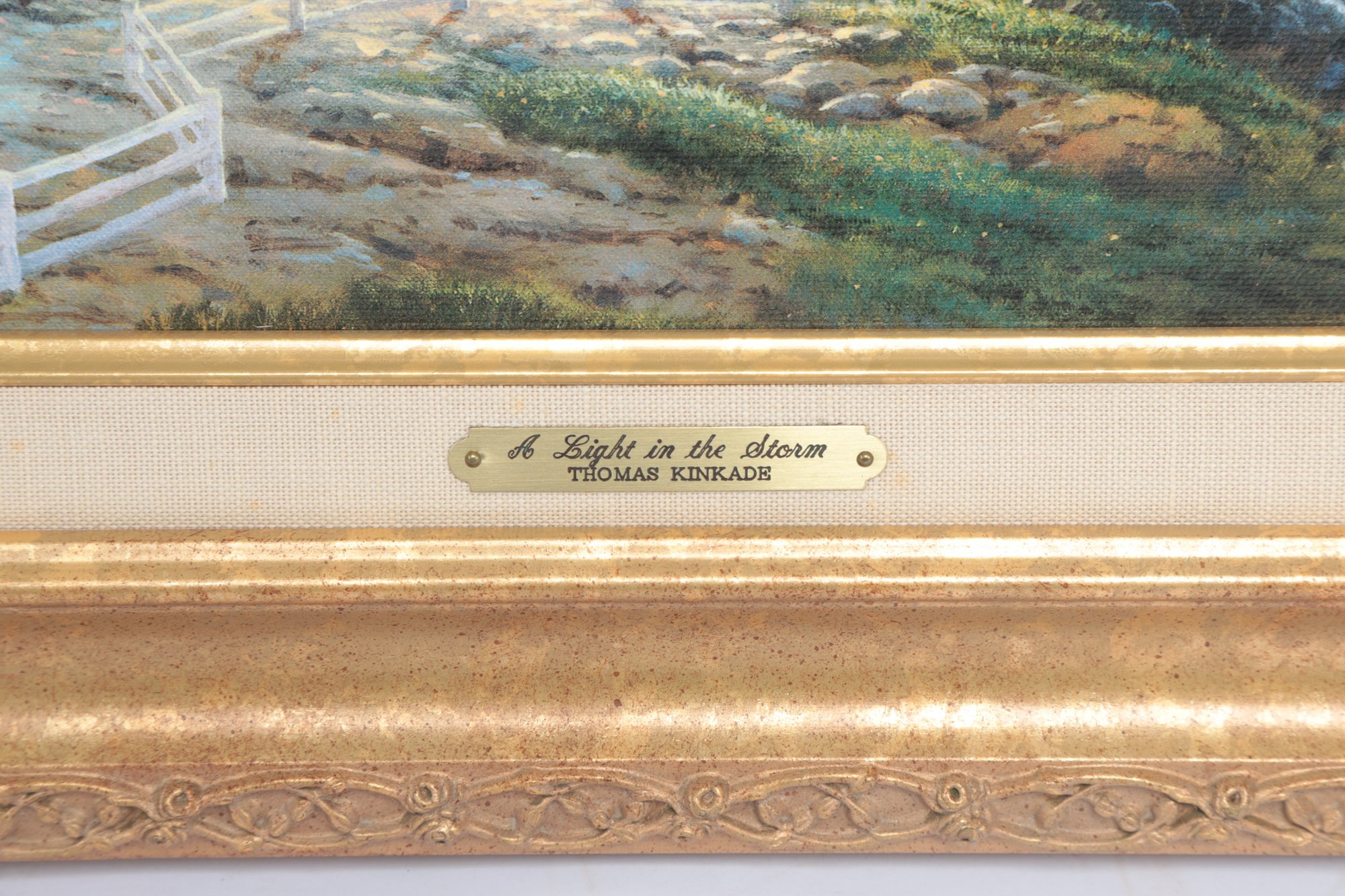 A Light In The Storm Thomas Kinkade Painting W/ COA. See pictures carefully for details. Frame measures 21.5" x 17.5".