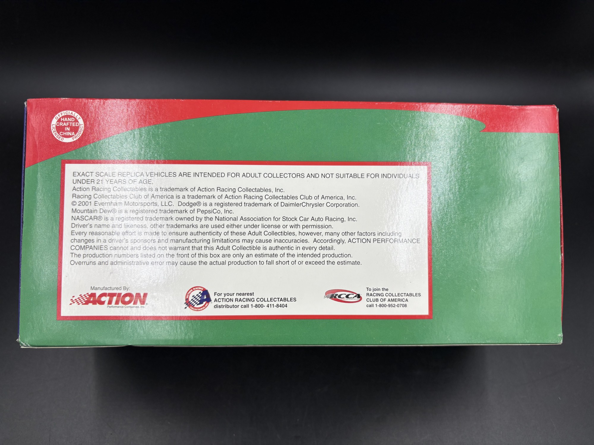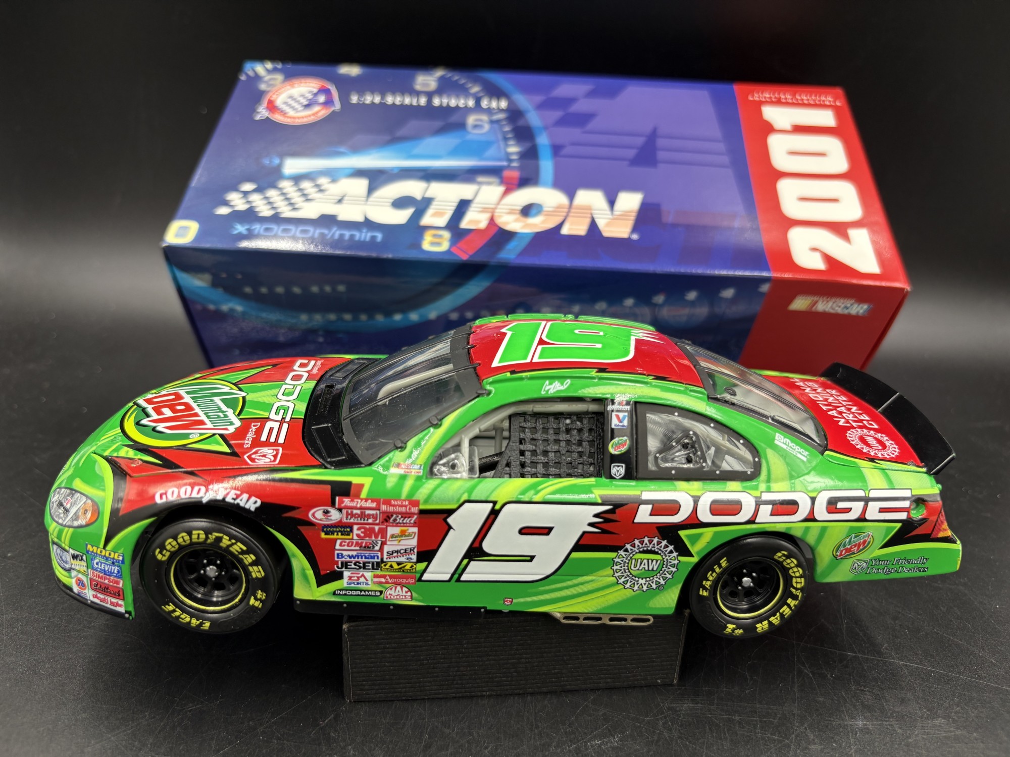 New in box, never displayed. The blue Action box is inside the Mountain Dew Box with the car inside.