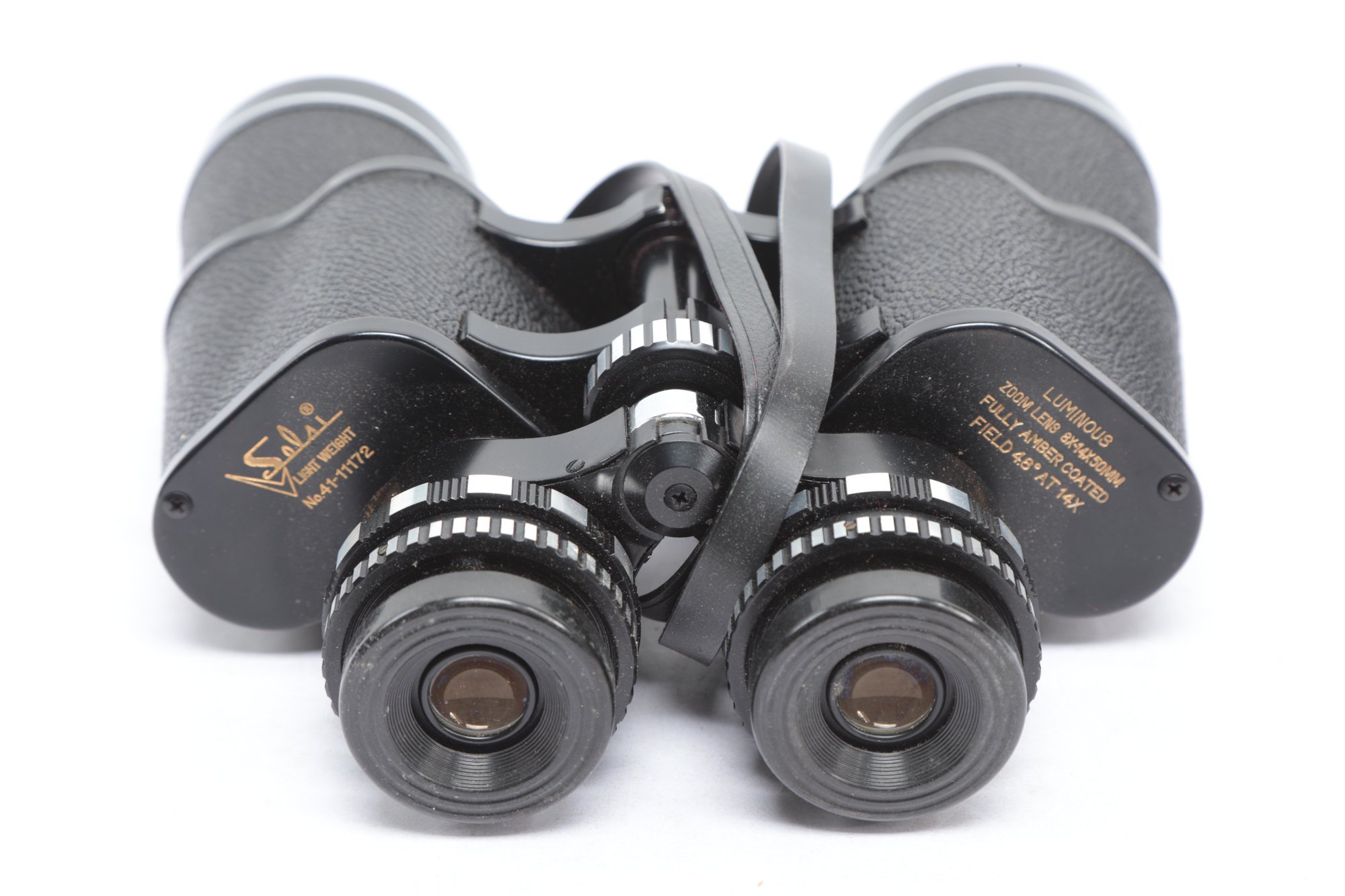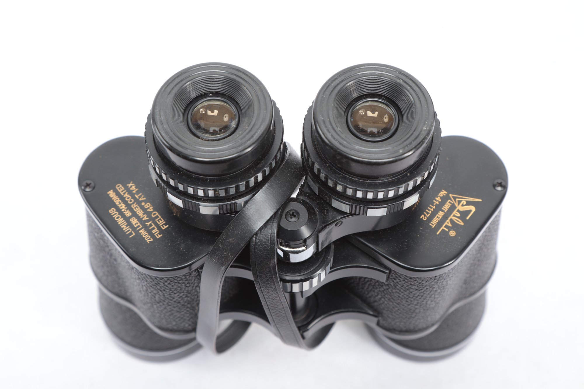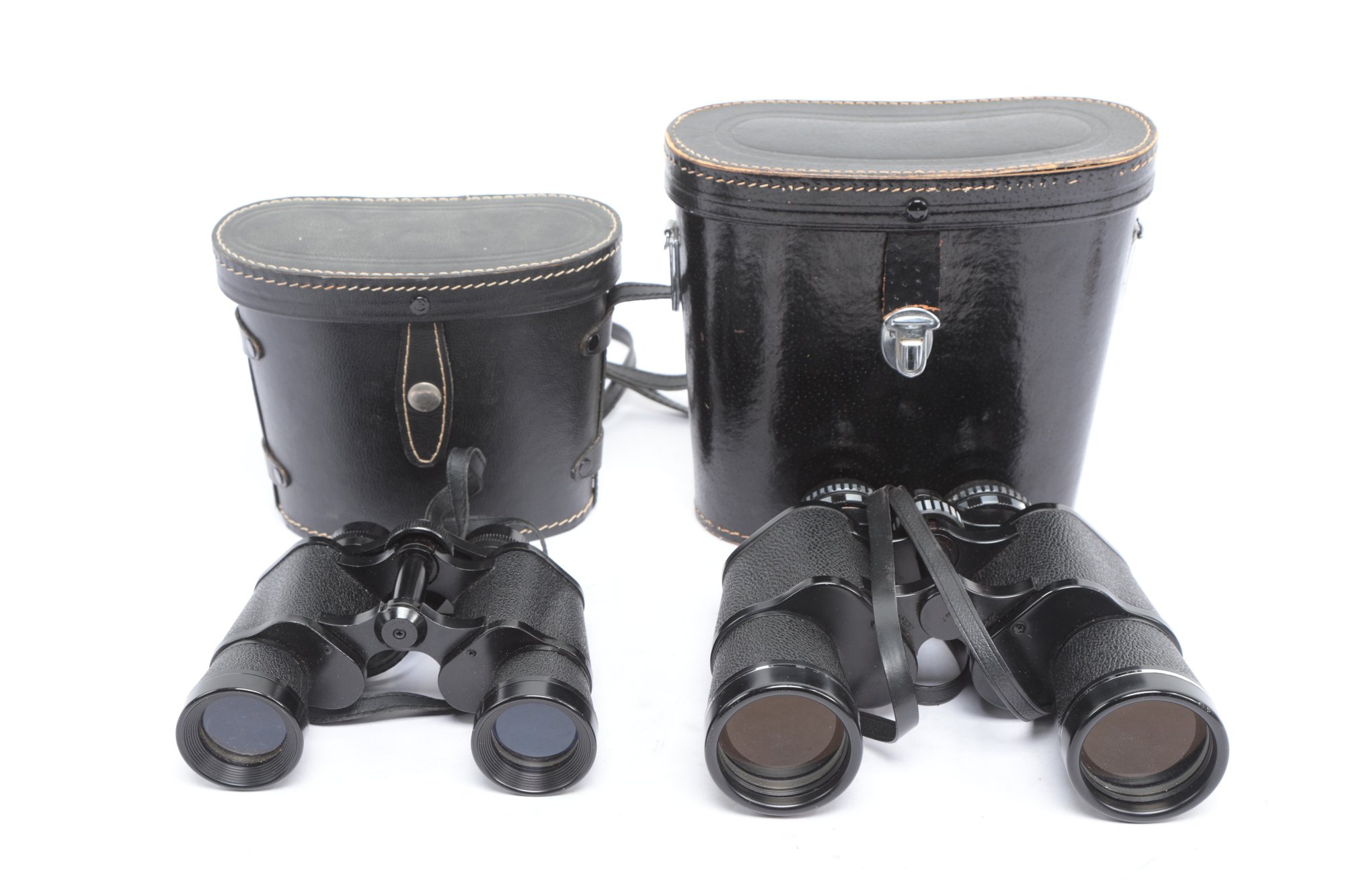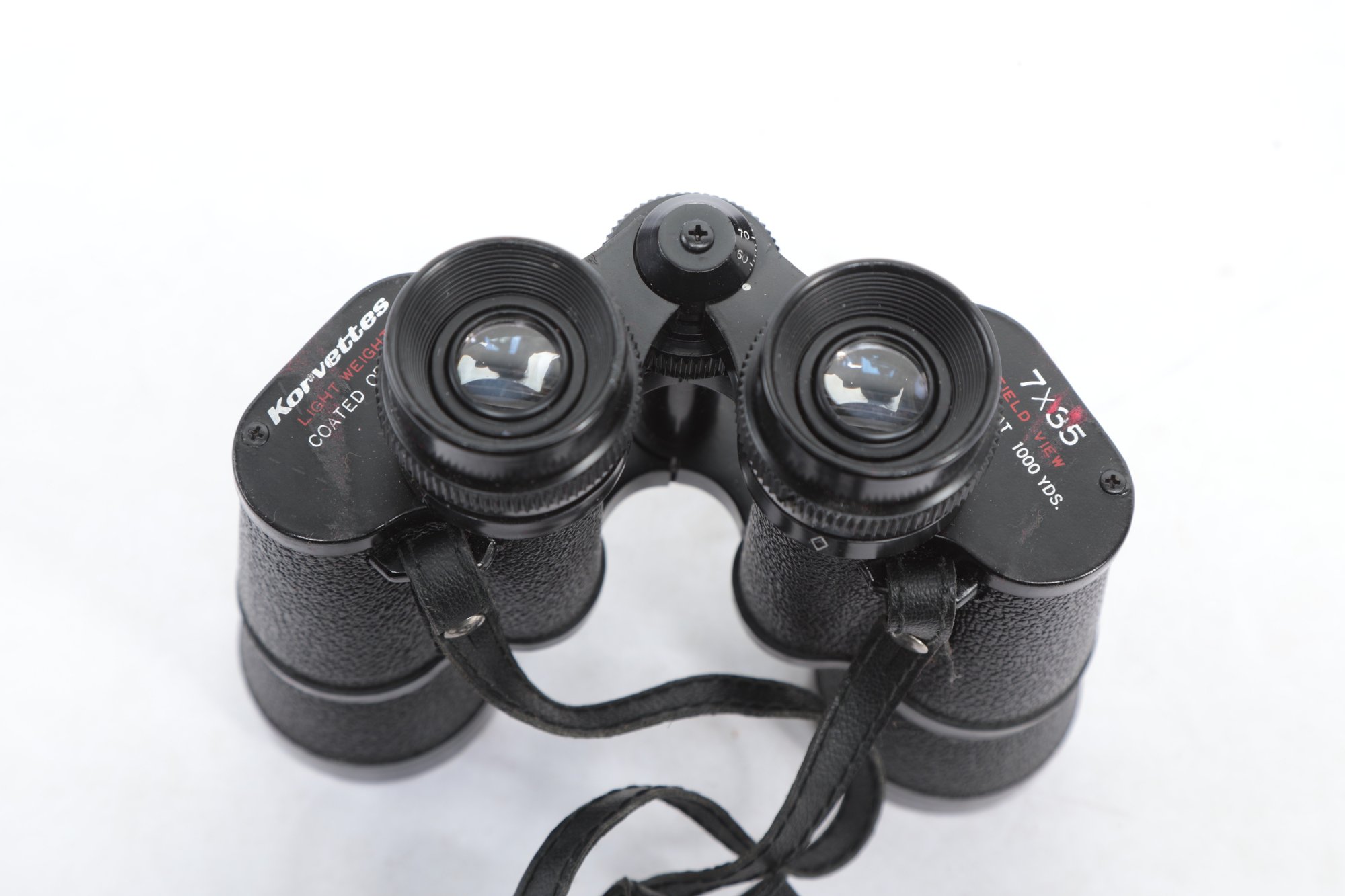Pair Of Vintage Binoculars Korvettes 7x35 And Selsi Lightweight. See pictures carefully for details on contents included with lot and condition. Both binoculars are in carry case. One case is broken on bottom