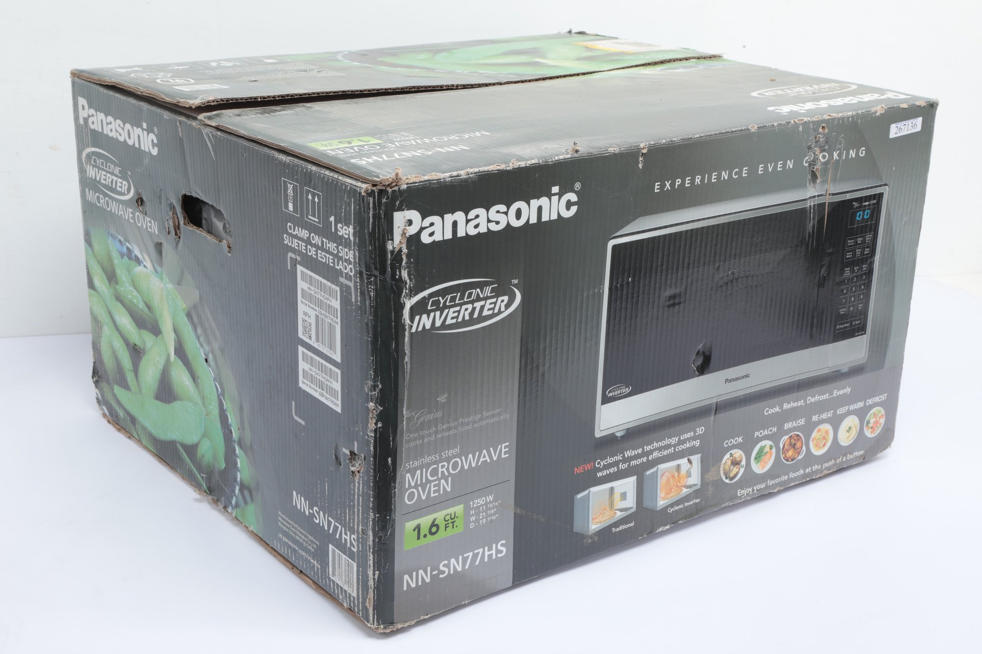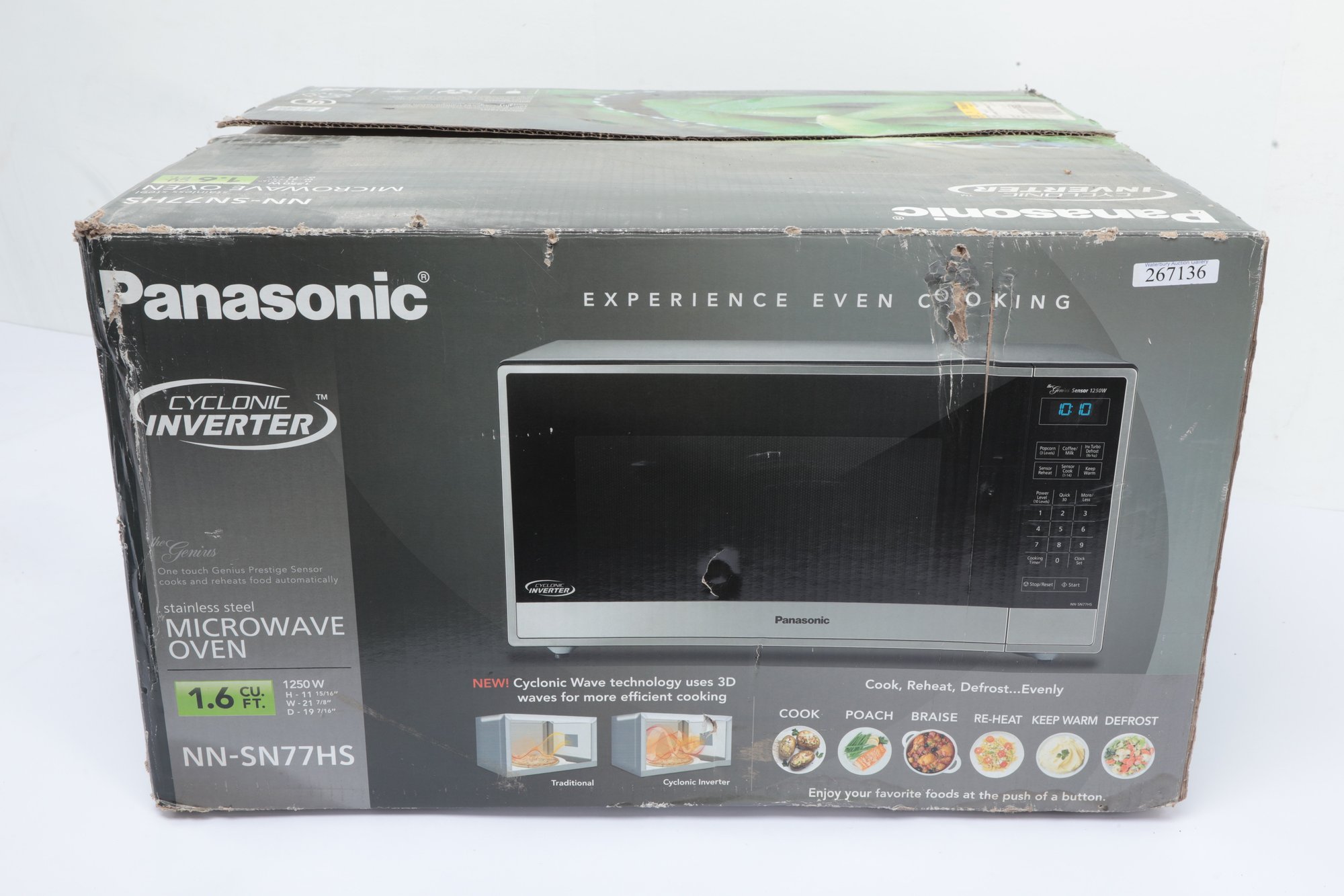 Panasonic Open Box Cyclonic Inverter Microwave Oven w/ instructions. See pictures carefully for details. Microwave appears unused in open box.