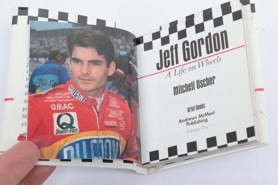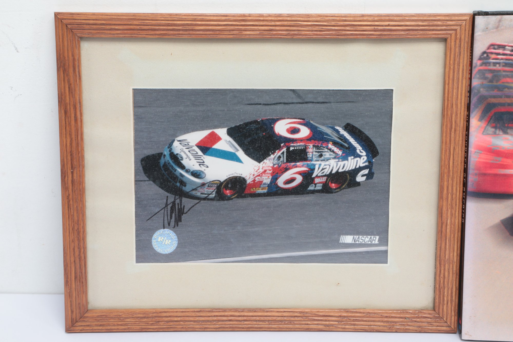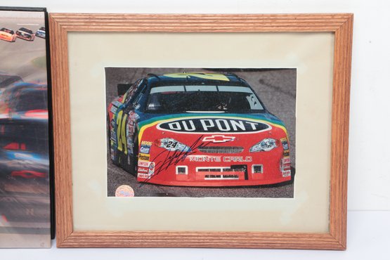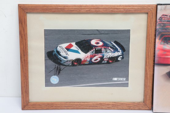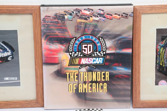 Nascar Book W/ Two Framed Signed Photographs. Signatures are not authenticated. See pictures carefully for details on contents included with lot and condition.