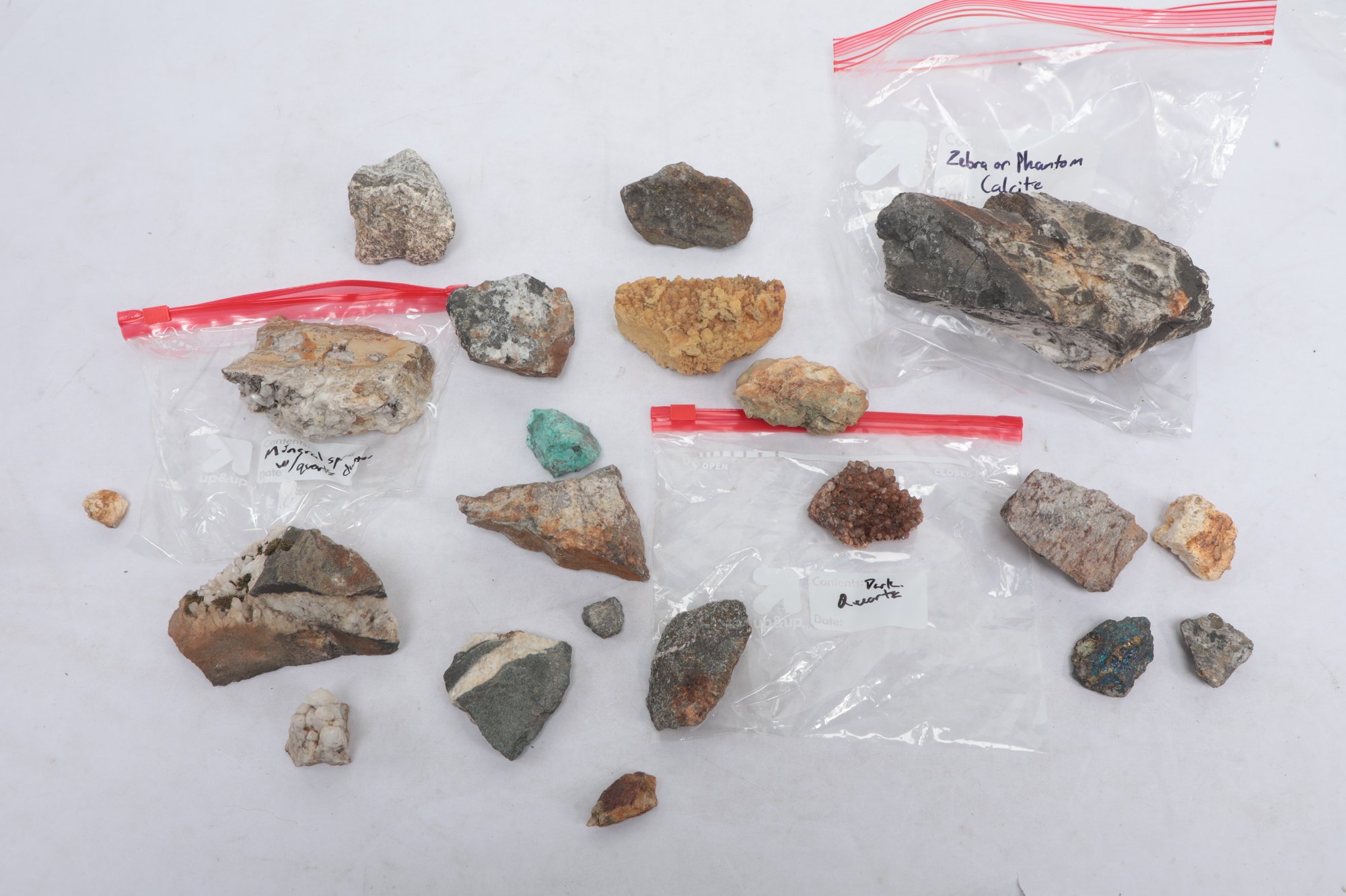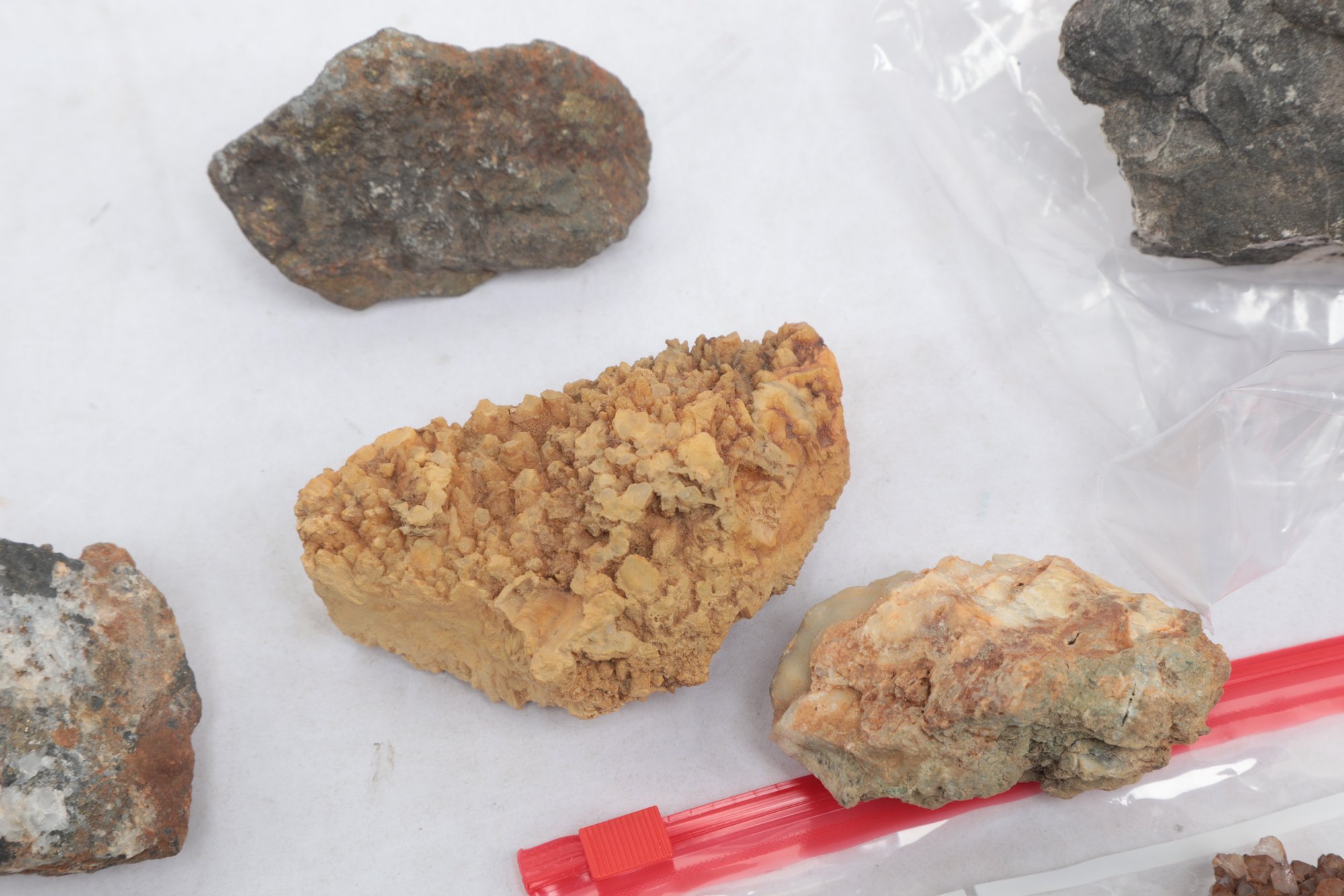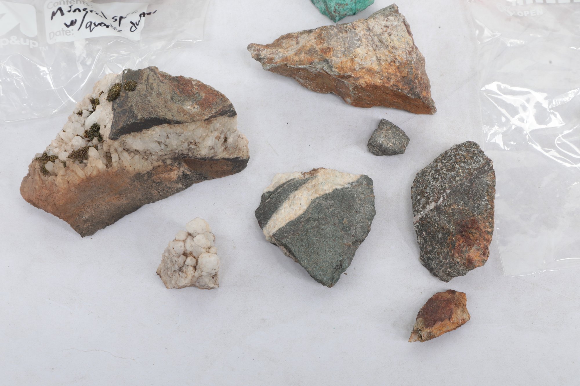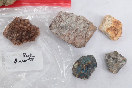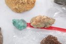 Assorted Lot Mineral And Rock Specimens. See pictures carefully for details on contents included with lot, condition and size.