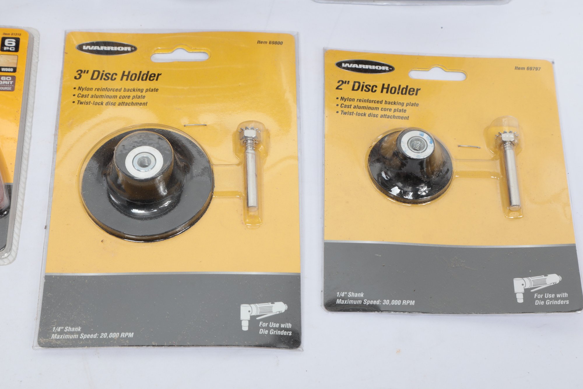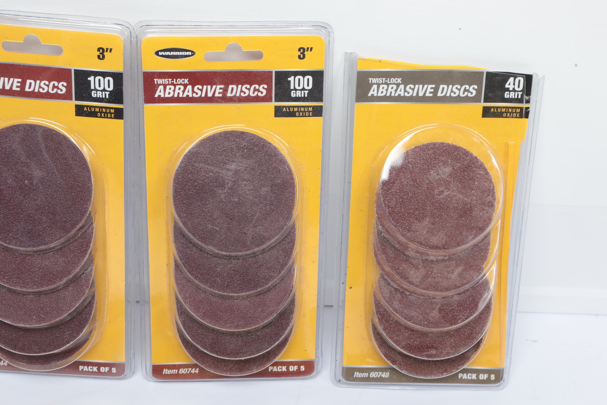 Assorted Size Warrior Abrasive Discs, most unused in original packaging. See pictures carefully for details on contents included and condition.