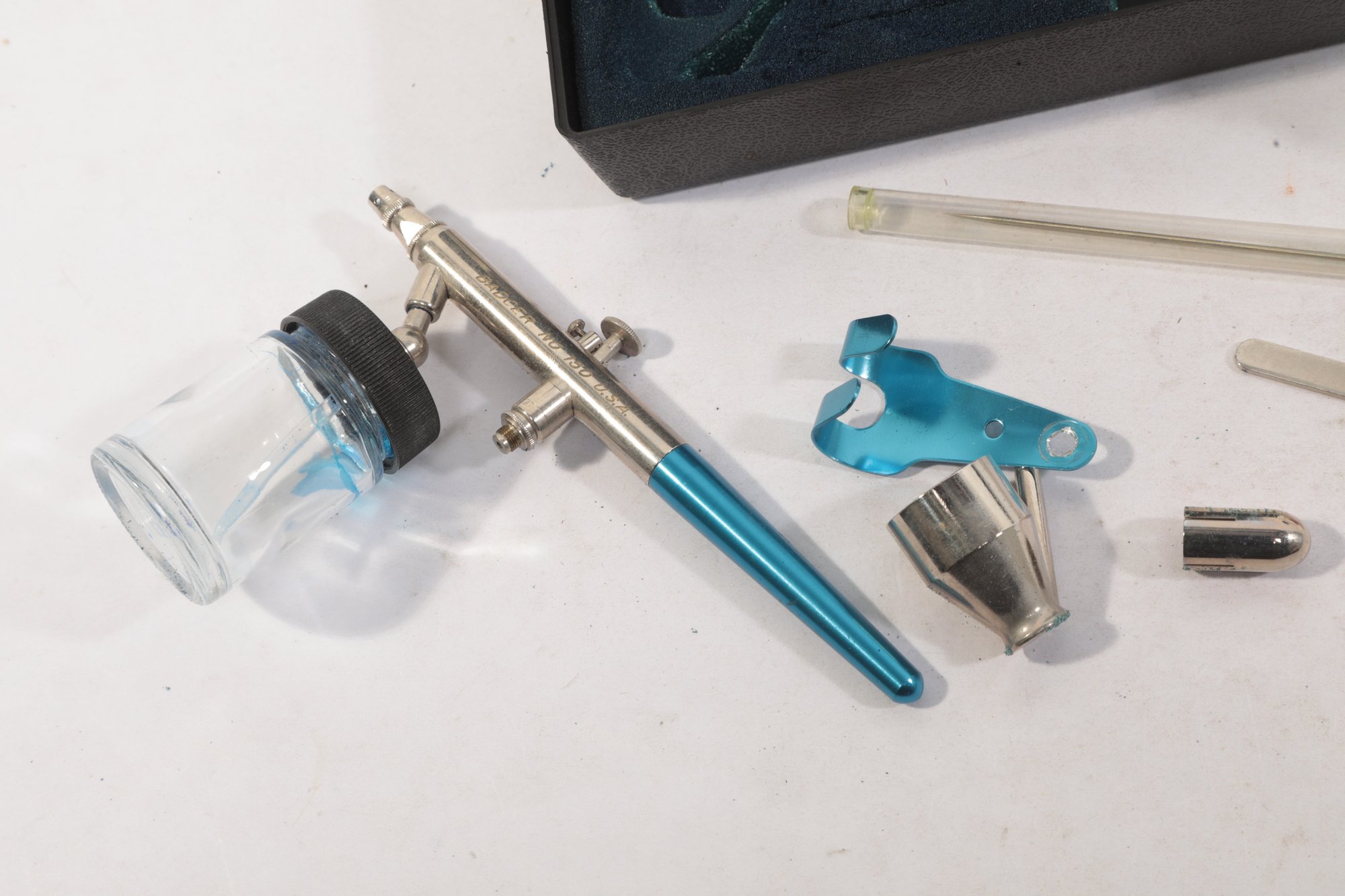 Badger Model 150 Professional Airbrush Set. See pictures carefully for details on contents included and condition, set is used in good condition.