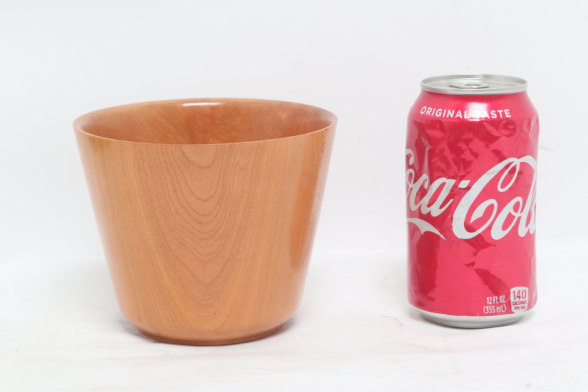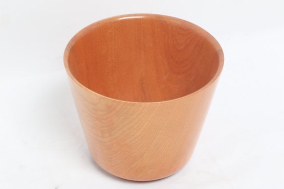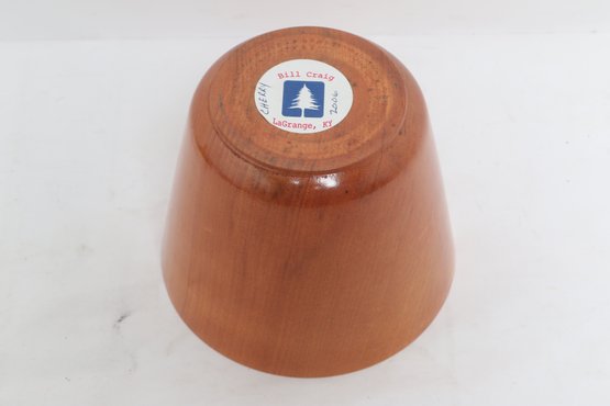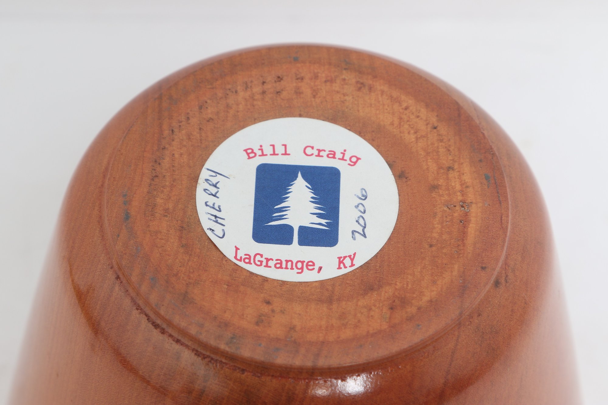 Hand-turned cherry wood bowl by Bill Craig of LaGrange, Kentucky, dated 2006. Features a smooth, natural grain finish with warm tones and tapered form. Signed on the base. Shows light wear consistent with age and use, ideal for display or functional décor.