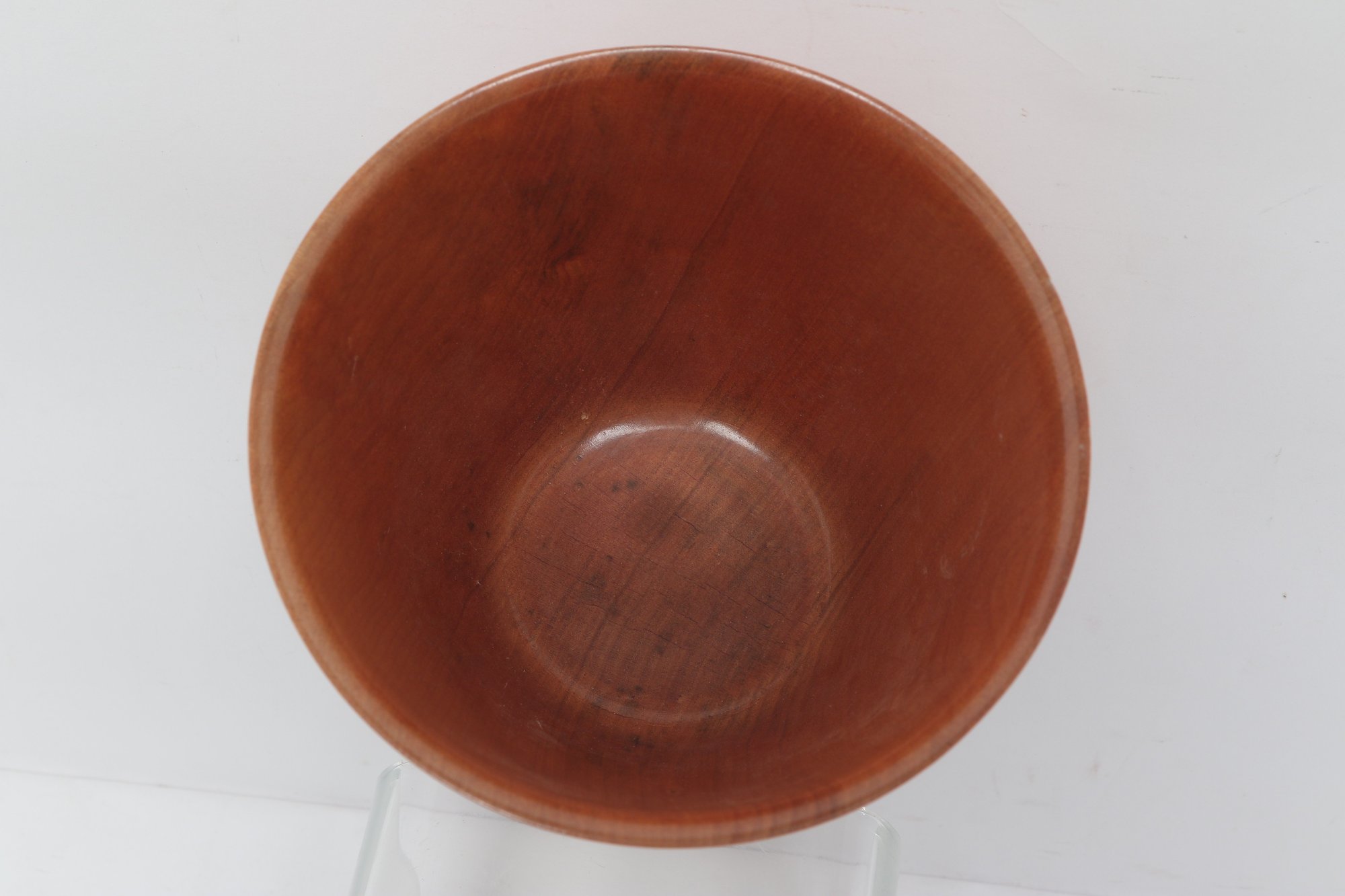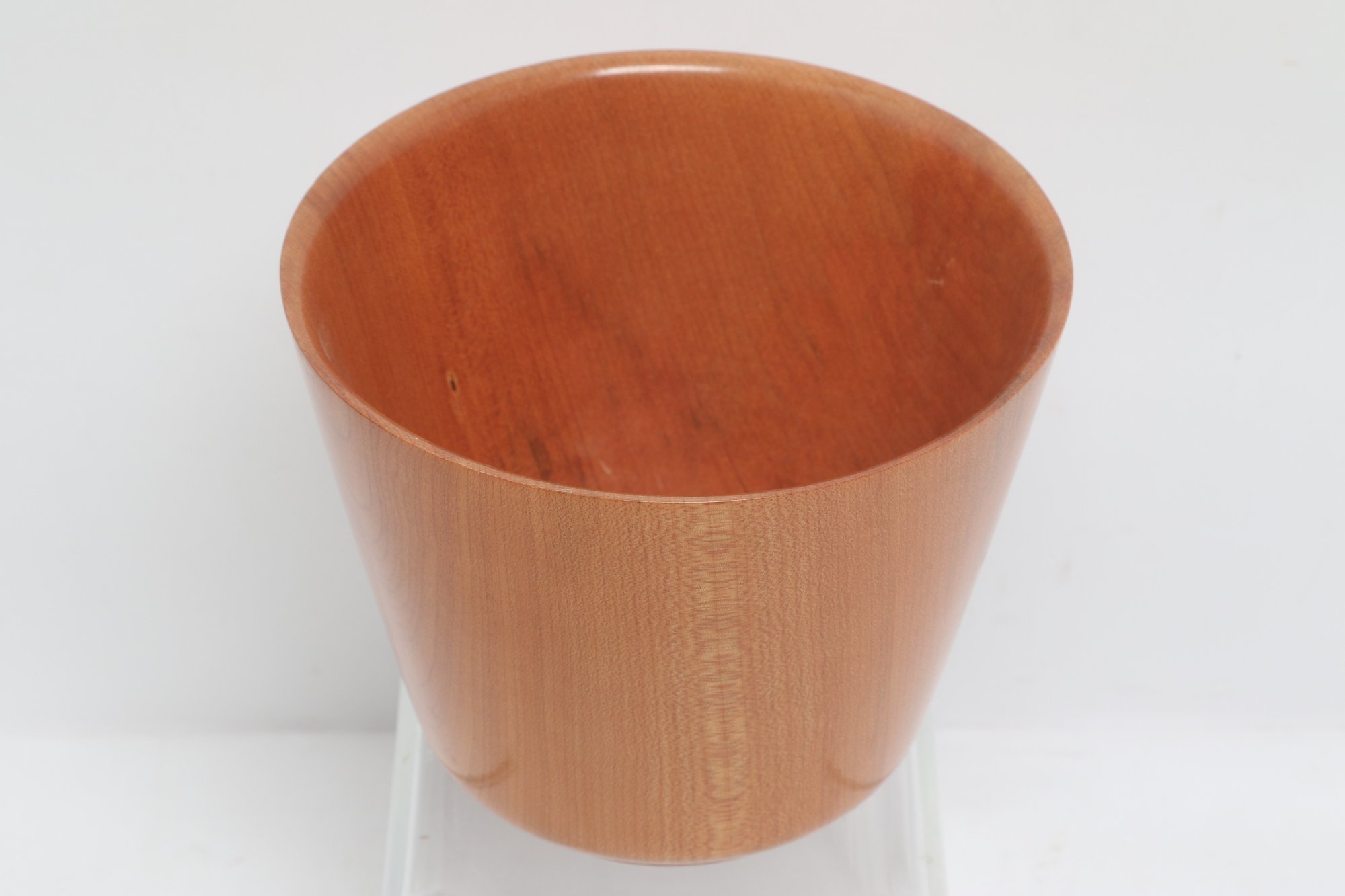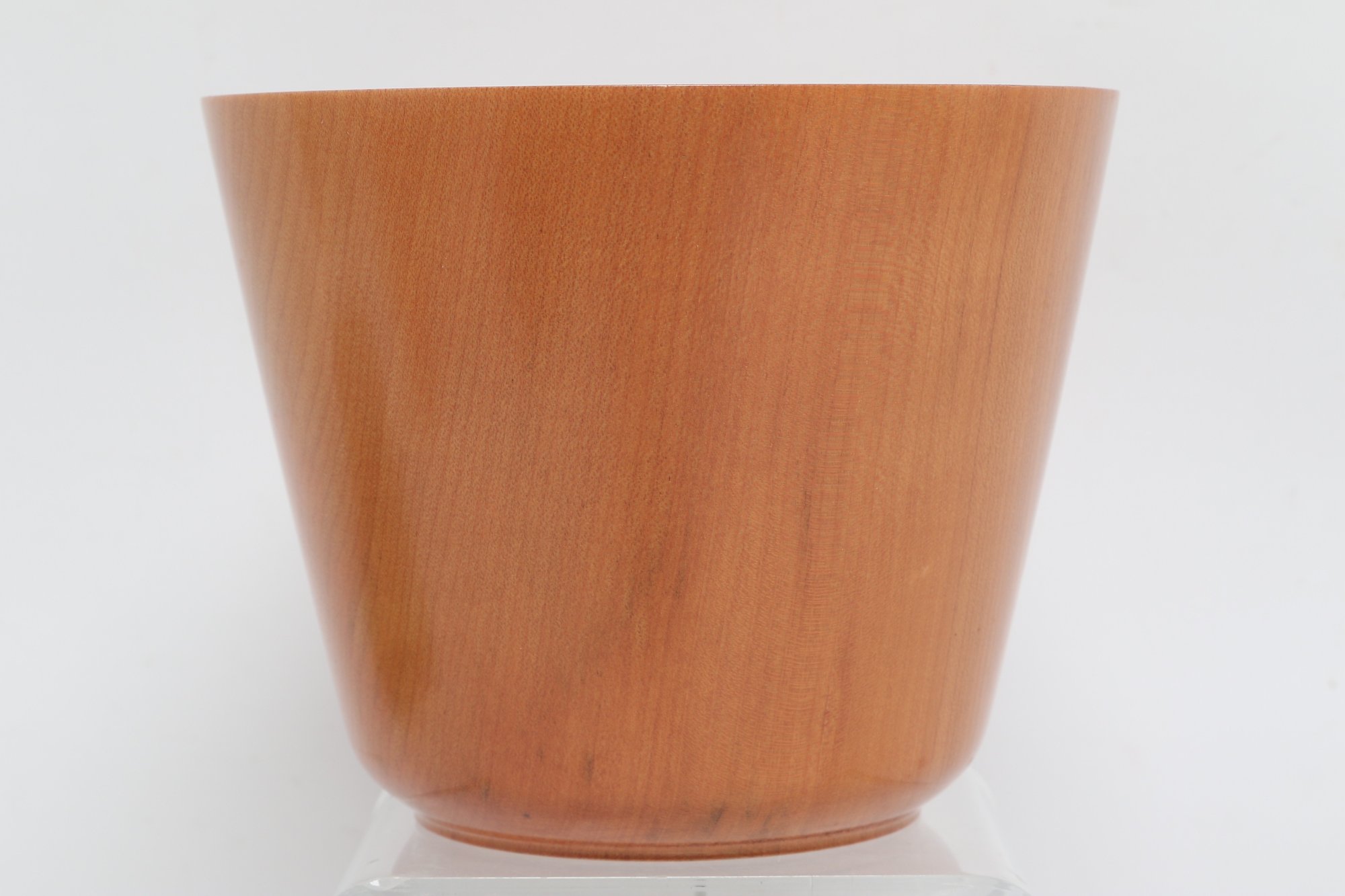 Hand-turned cherry wood bowl by Bill Craig of LaGrange, Kentucky, dated 2006. Features a smooth, natural grain finish with warm tones and tapered form. Signed on the base. Shows light wear consistent with age and use, ideal for display or functional décor.
