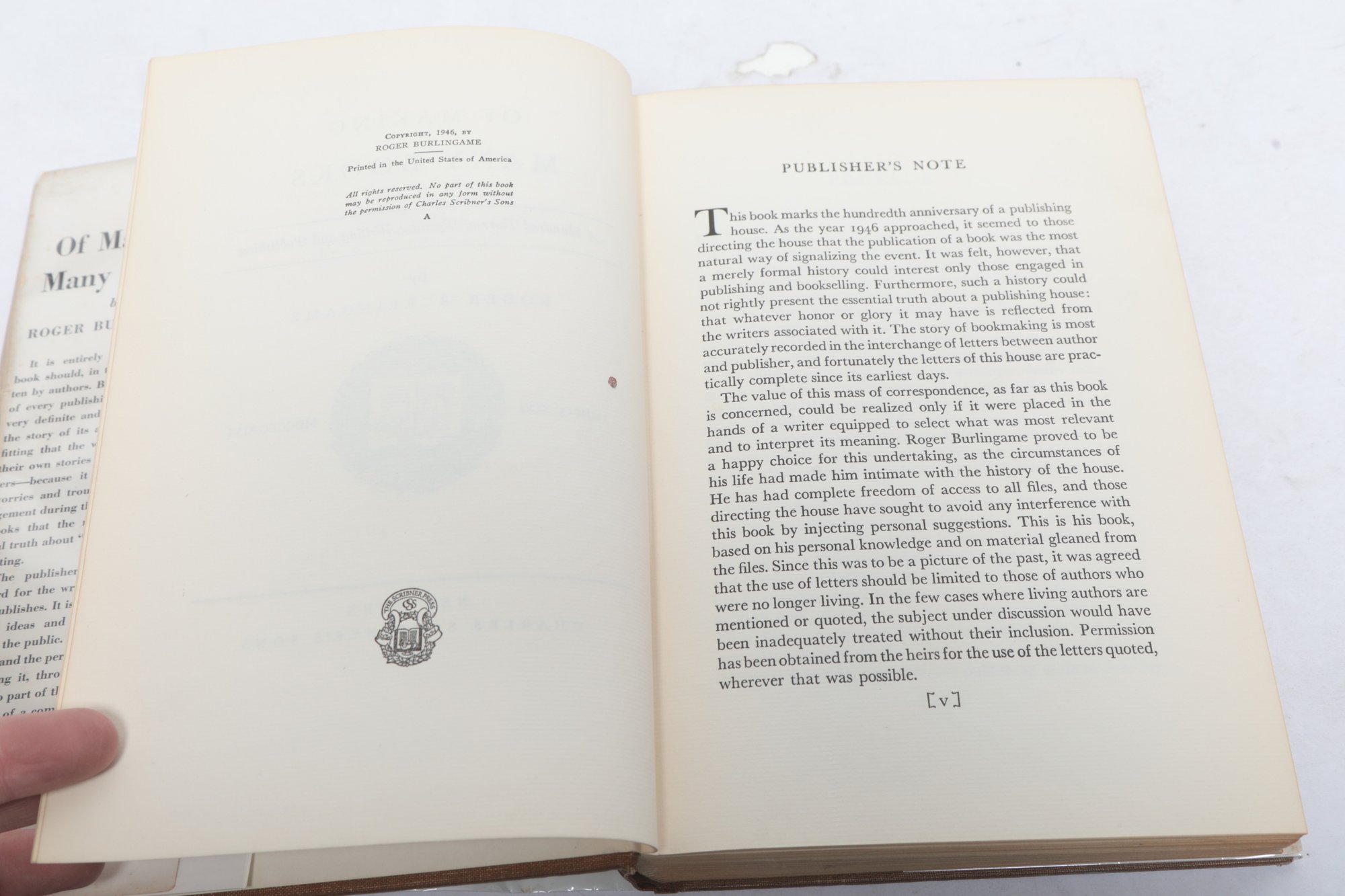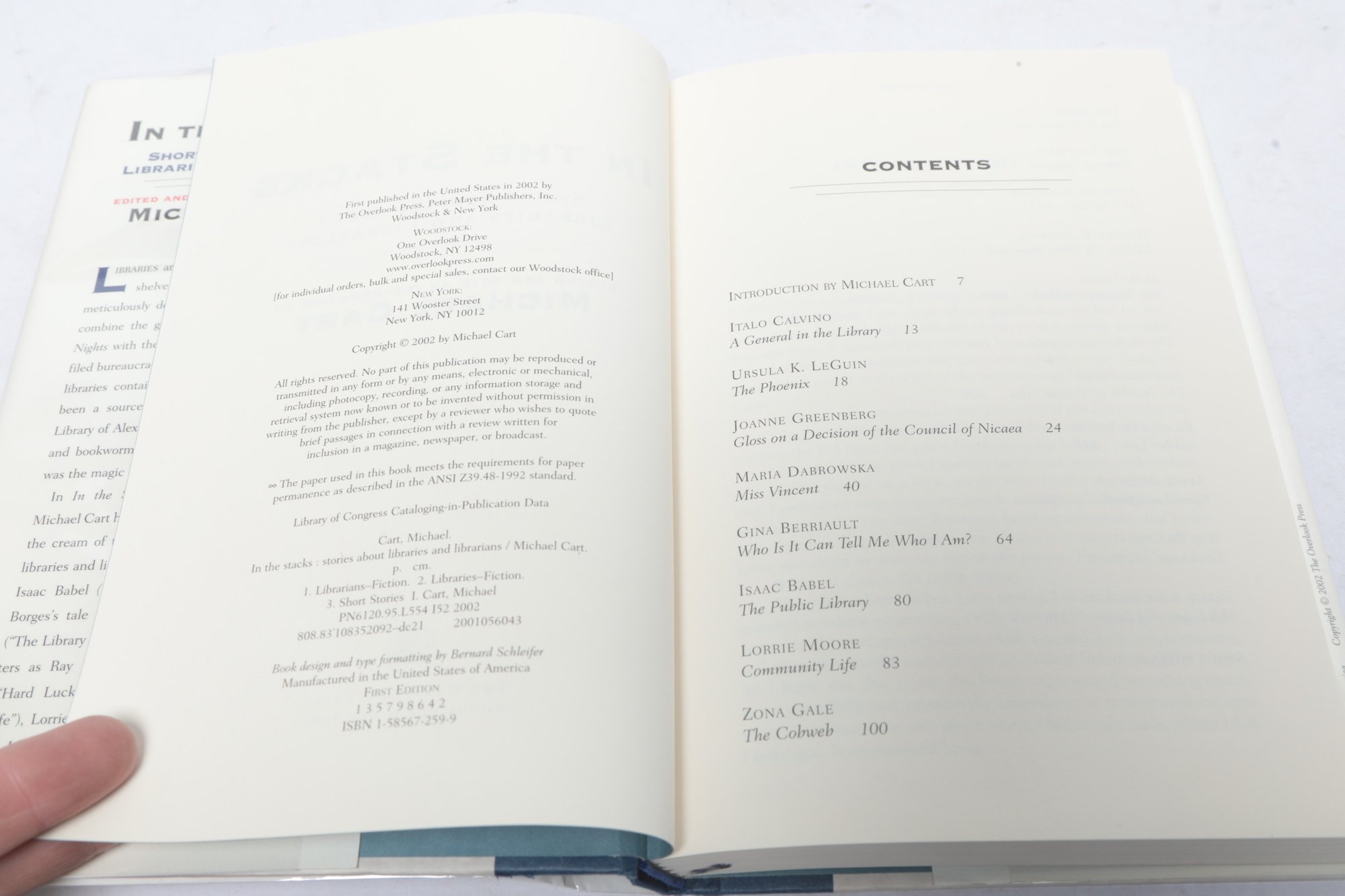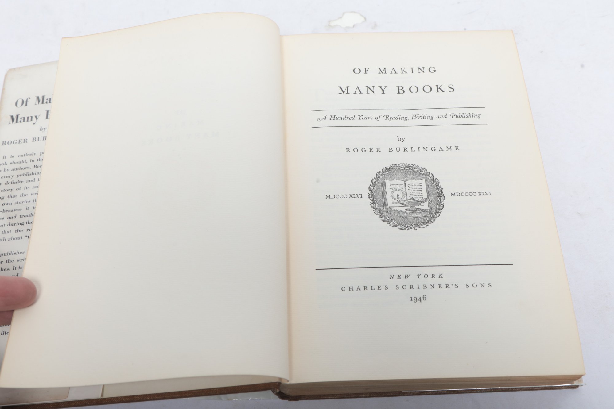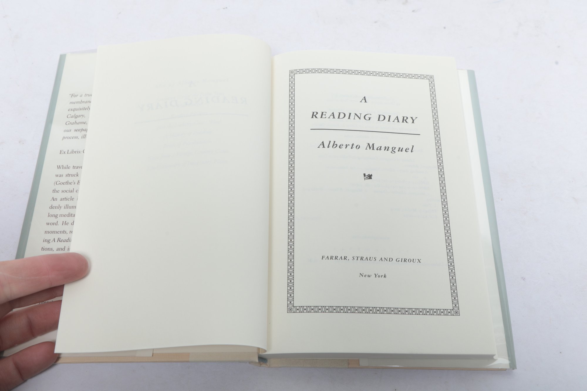 This scholarly lot focuses on the history of books and libraries, featuring A Reading Diary by Alberto Manguel, In the Stacks edited by Michael Cart, Of Making Many Books by Roger Burlingame, and Luigi Balsamo’s Bibliography (1990). The collection consists of three cloth-bound hardcovers in dust jackets and one softcover volume. GOOD OR BETTER CONDITION.