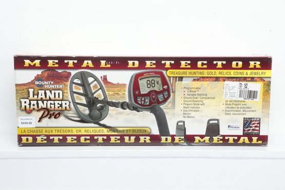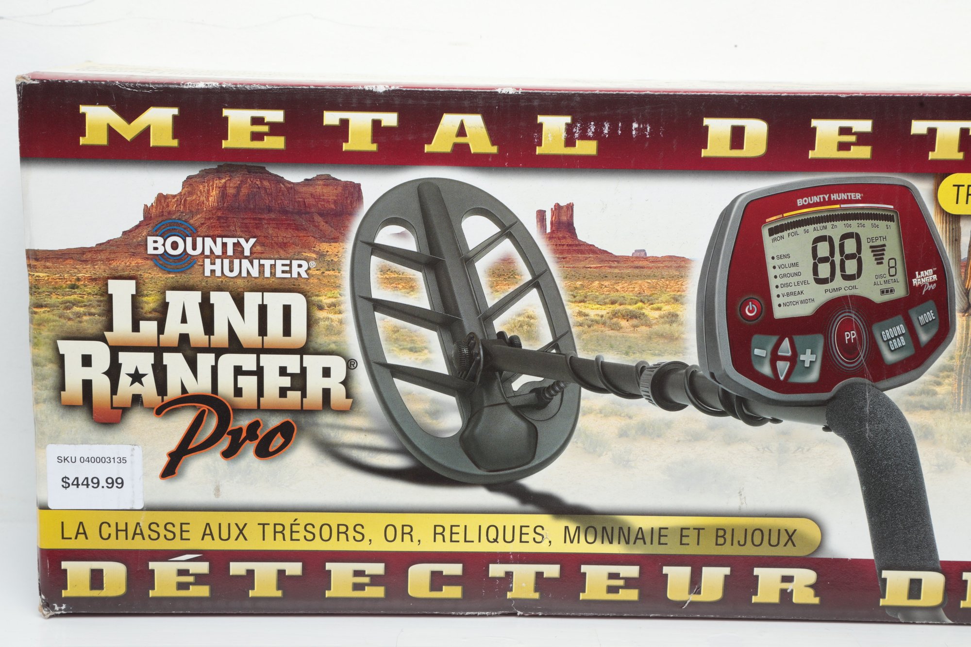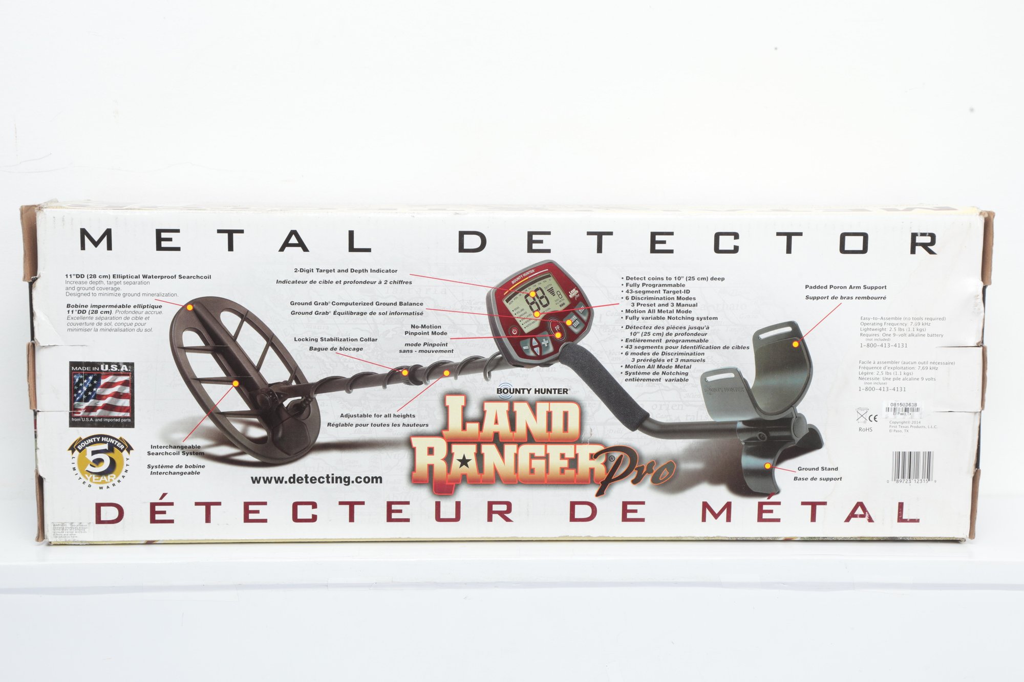 Bounty Hunter Land Ranger Pro Metal Detector. Open but appears unused. See pictures carefully for details on contents included and condition.