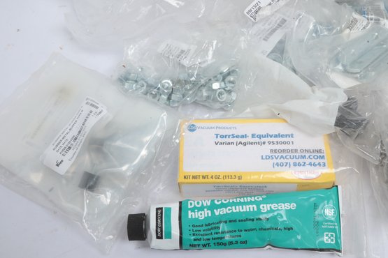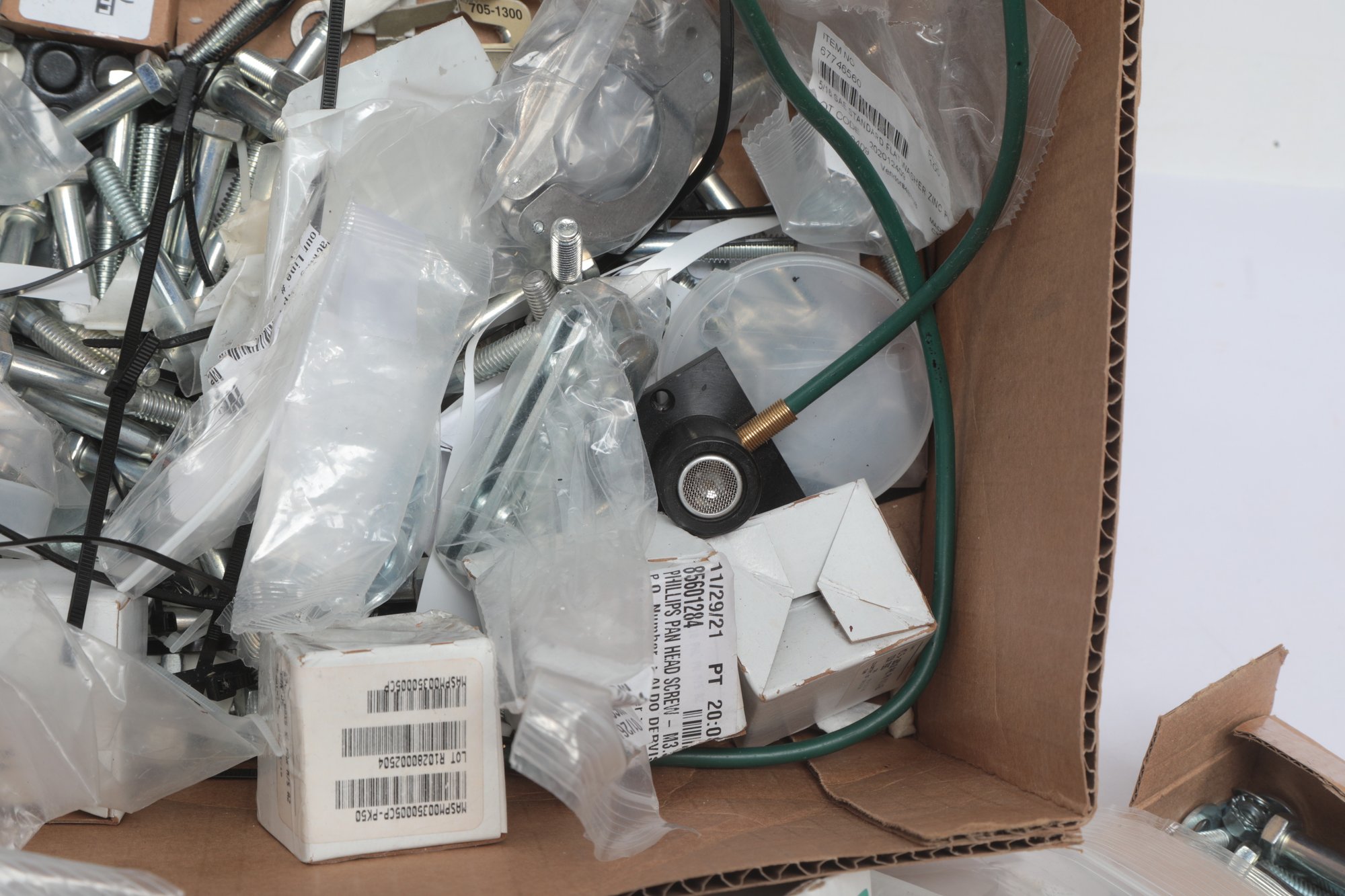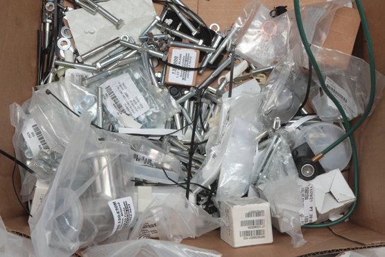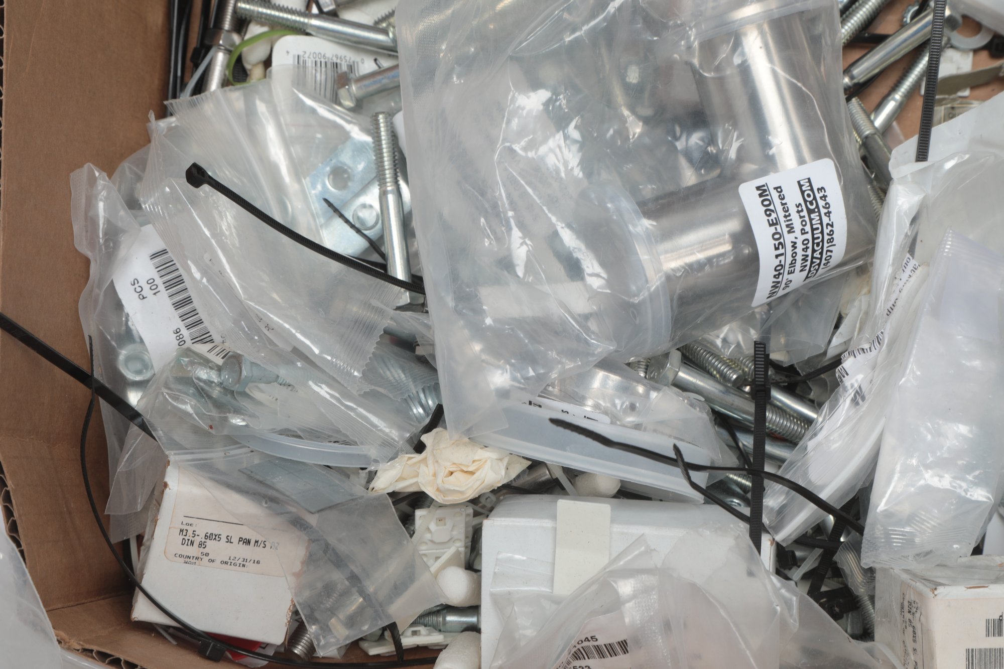 Box Lot Assorted Nuts, Bolts, Washers And Vacuum Parts. See pictures carefully for details on contents included with lot.