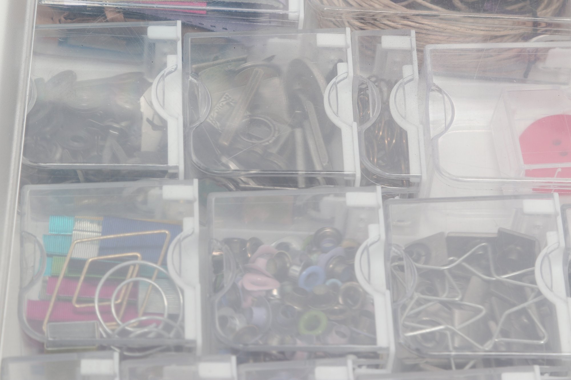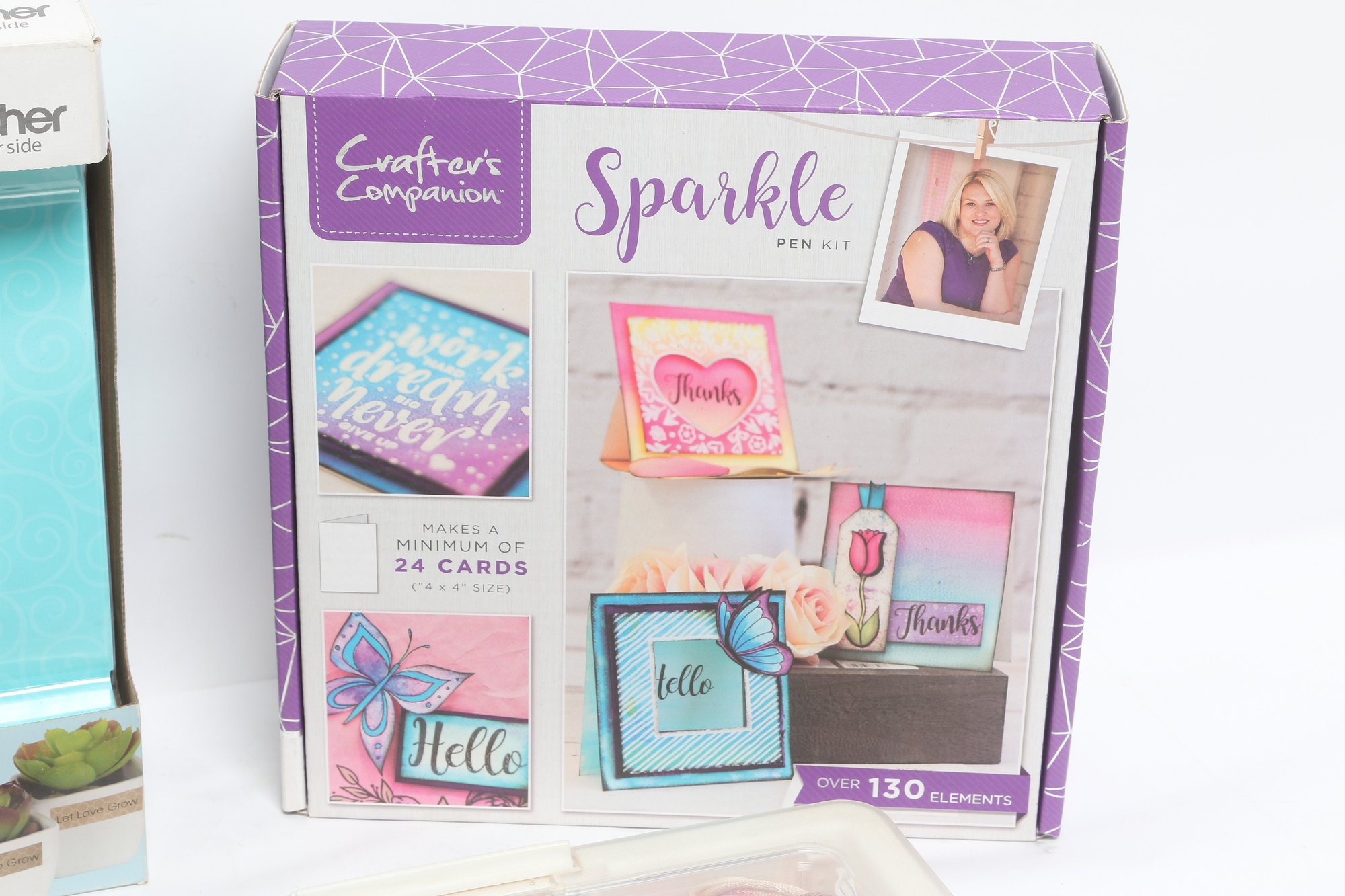 Crafting lot featuring a Brother P-Touch Embellish label maker along with Crafter’s Companion Stamp & Die and Sparkle kits. Includes two organizers filled with assorted embellishments such as sequins, gems, and decorative accents. A versatile set for scrapbooking, card making, and DIY projects. products appear to be new and unused.