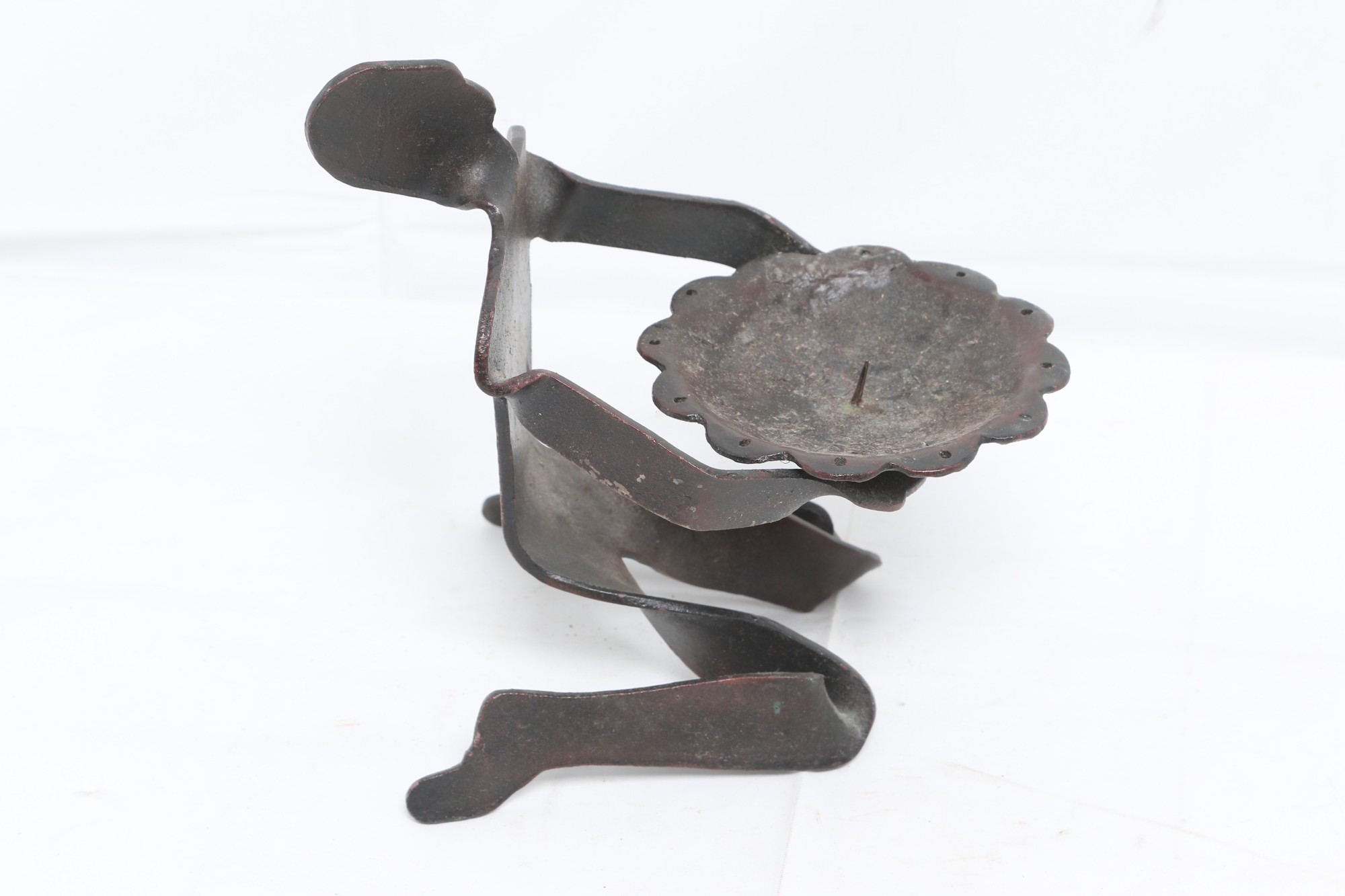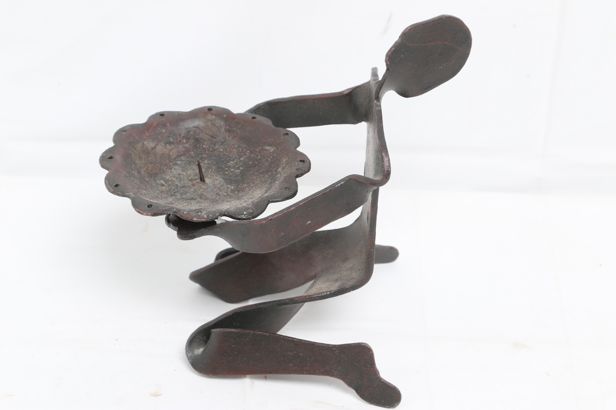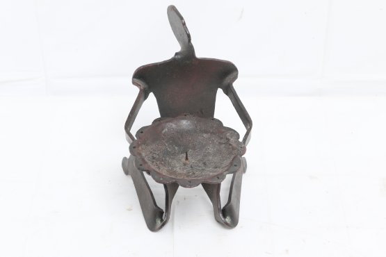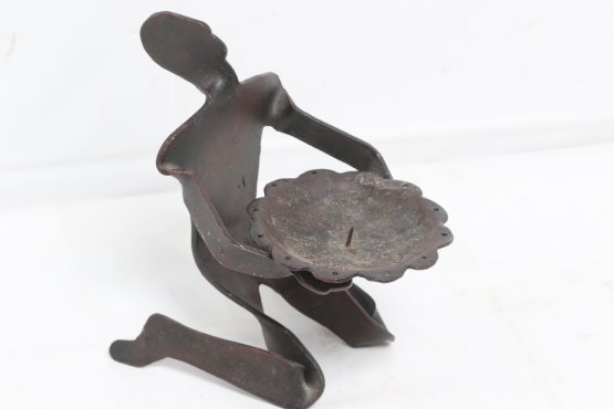 Brutalist Cast Iron Metal Sculpture Candle Holder