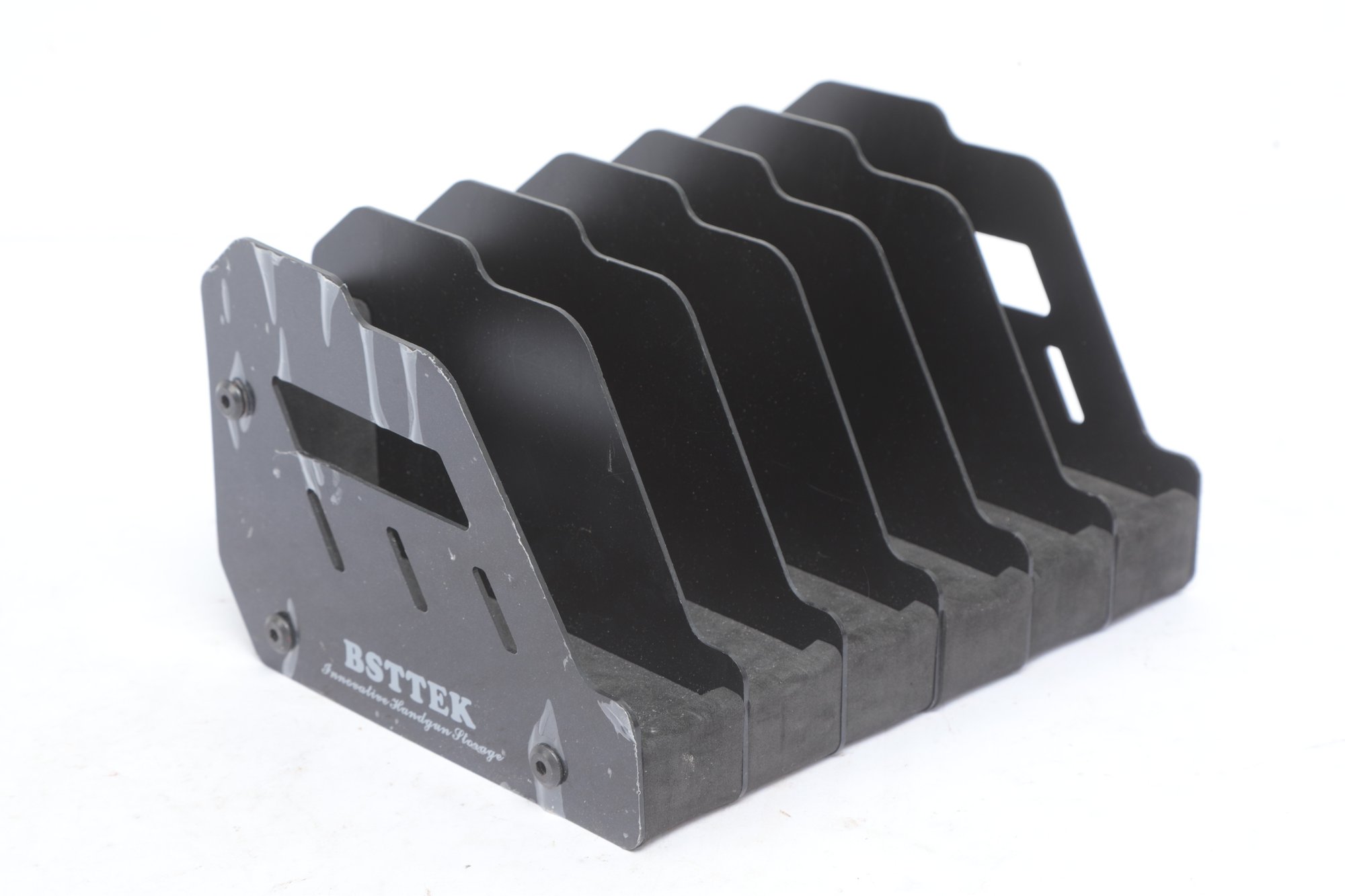 Bsttek Foam Pistol Rack For Gun Safe. Holds six handguns. See pictures carefully for details on size and condition.