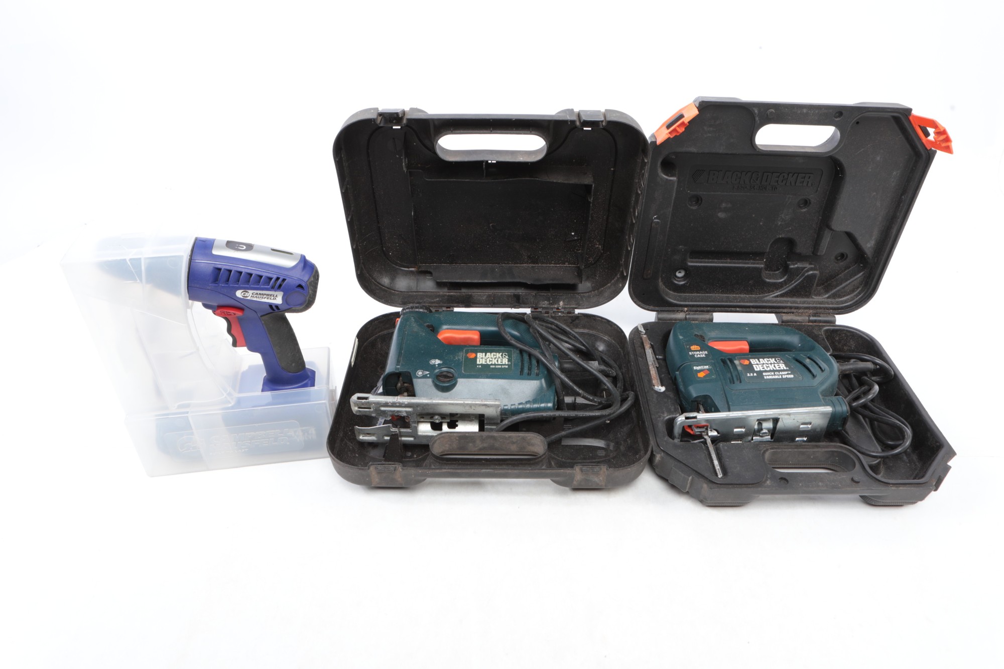 The jig saws are tested for power. The drill is untested.