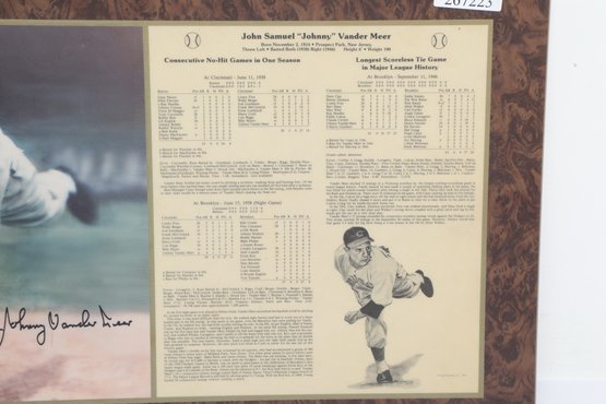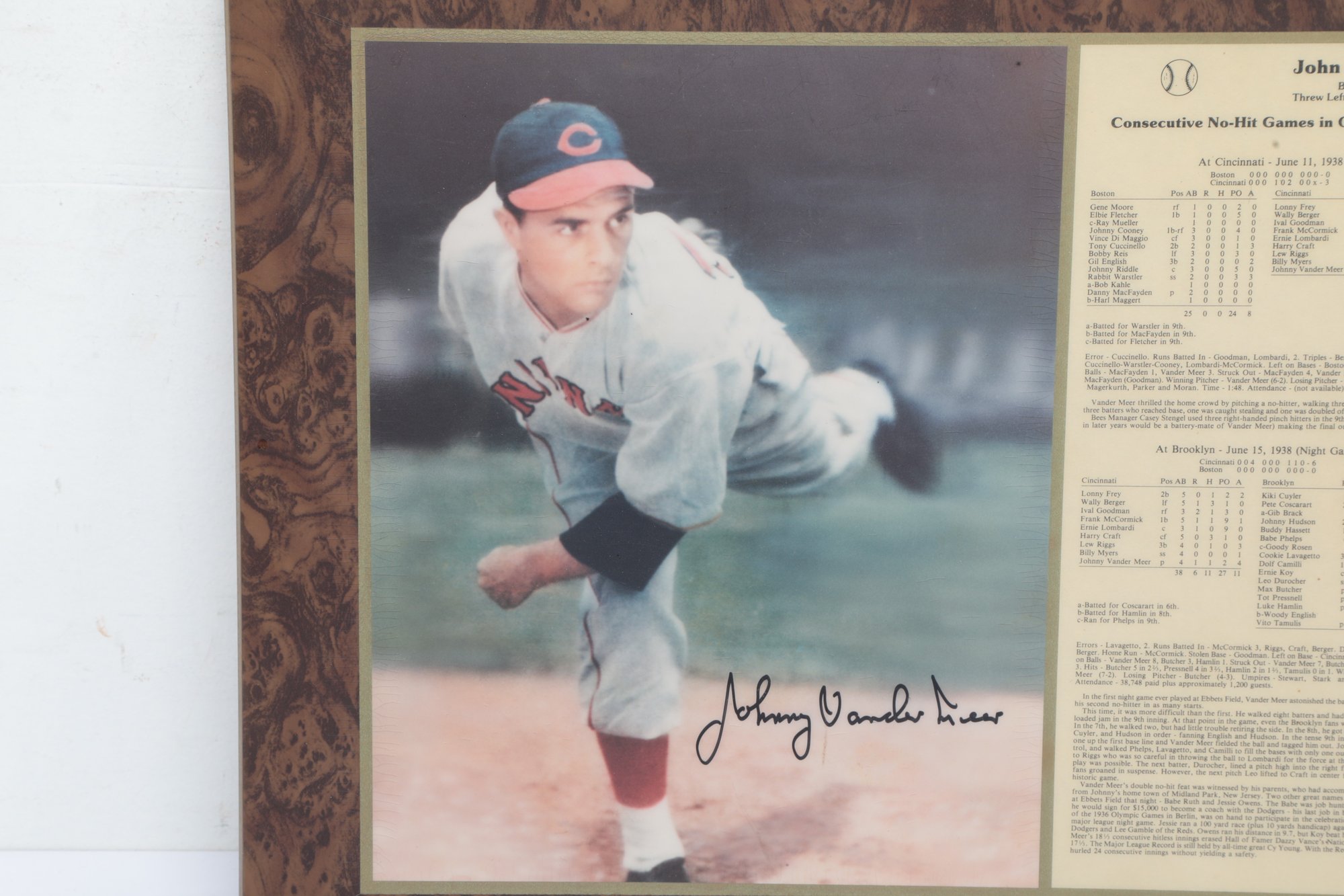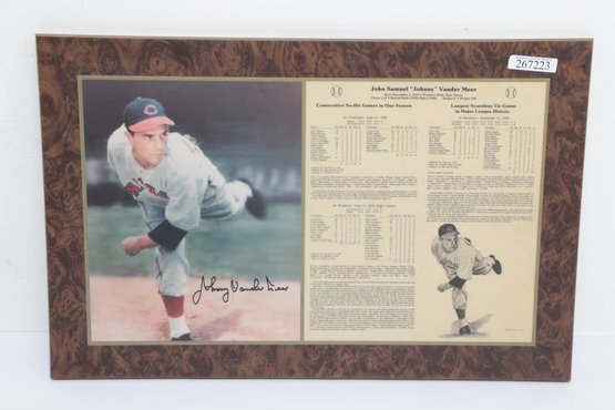 Chicago Cubs Johnny Vander Meer Signed Stat Display Plaque. Measures Approximately 20" x 13". Signature is not authenticated. See pictures carefully for details.