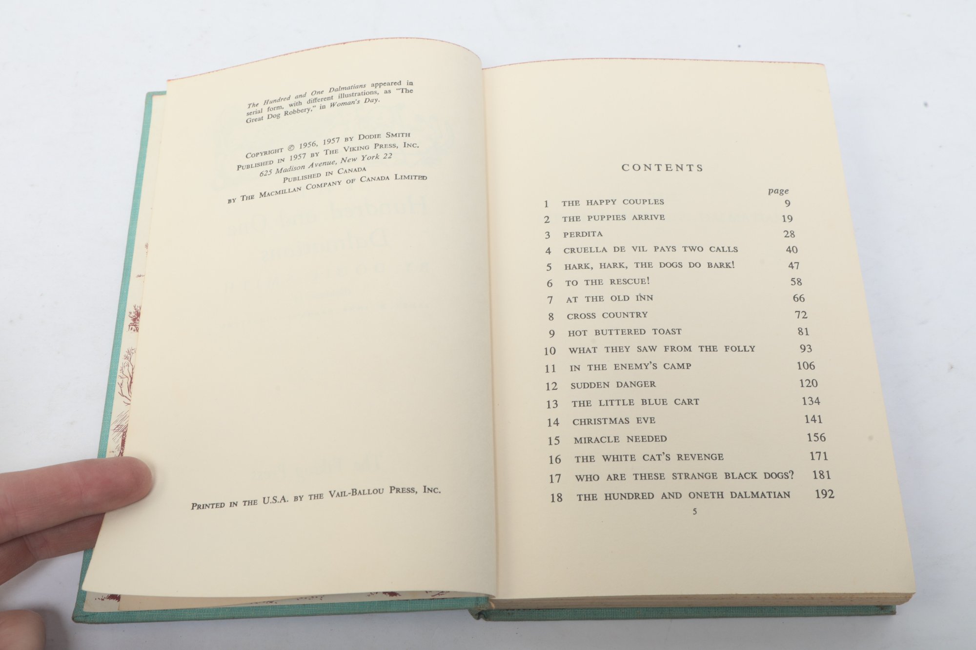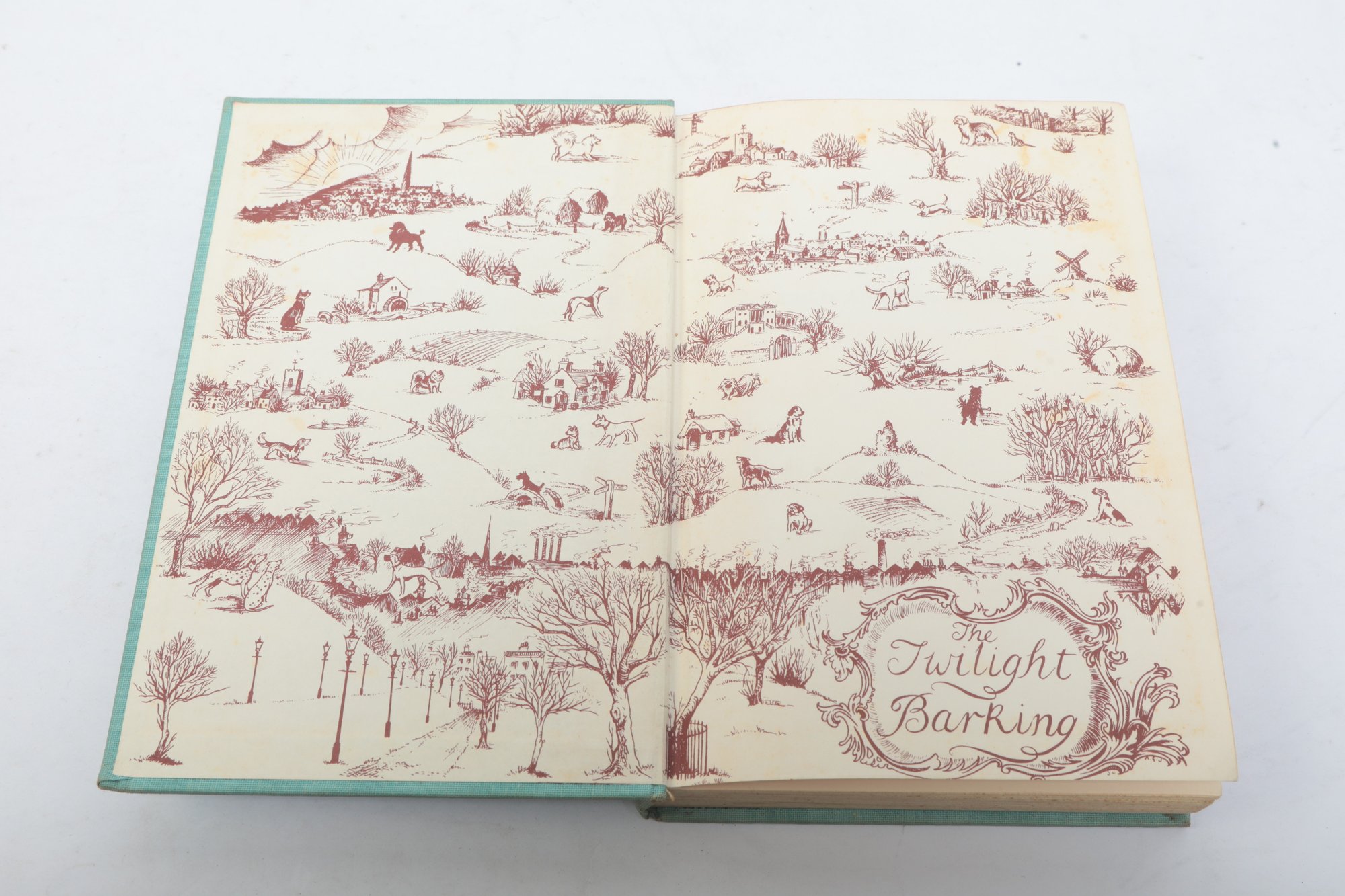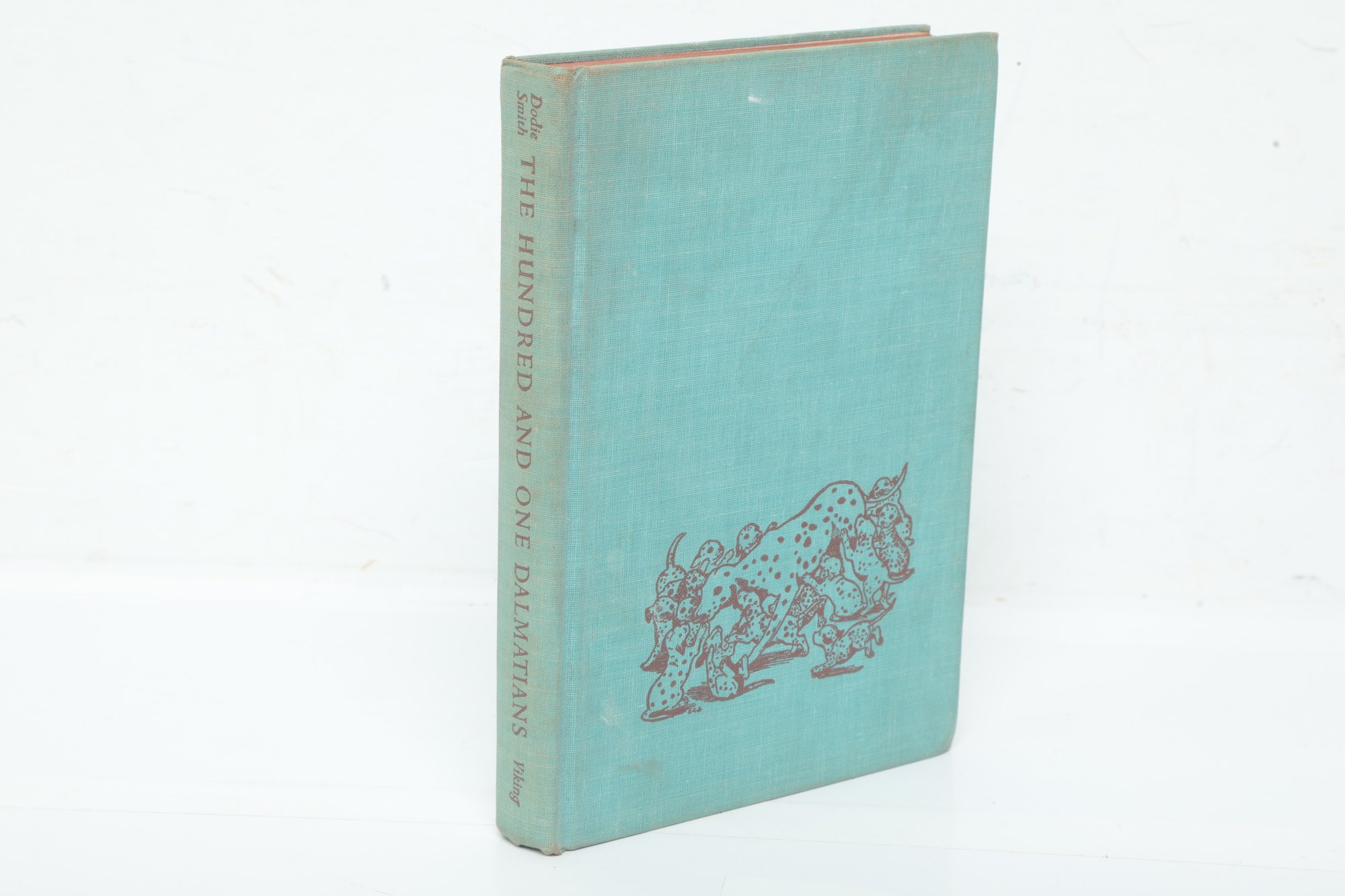 New York: The Viking Press, 1957. Hardcover in blue-green cloth with maroon stamped illustrations. Soiling and fading to covers.