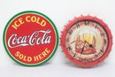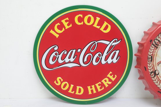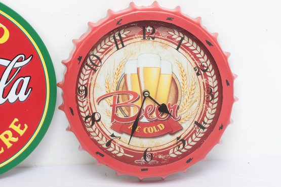 Collectable Wall Art W/ Coca Cola Sign And Beer Cap Clock. Clock is untested sold as is. See pictures carefully for details on both pieces size and condition.
