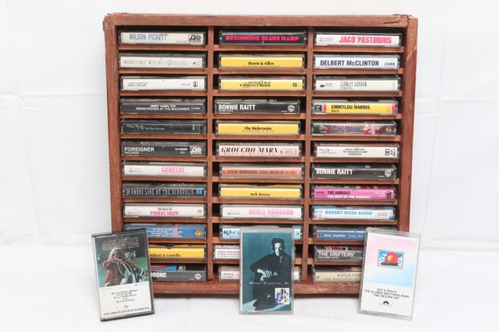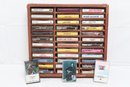 Collection Of Cassette Tapes In A Wooden Storage Rack