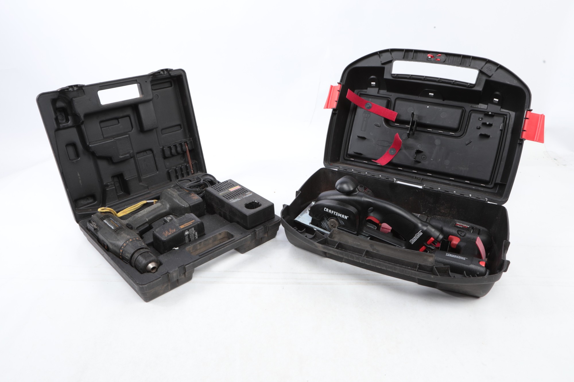 The industrial driver/drill comes w/carry case & comes with 2 batteries and a charger (all untested).