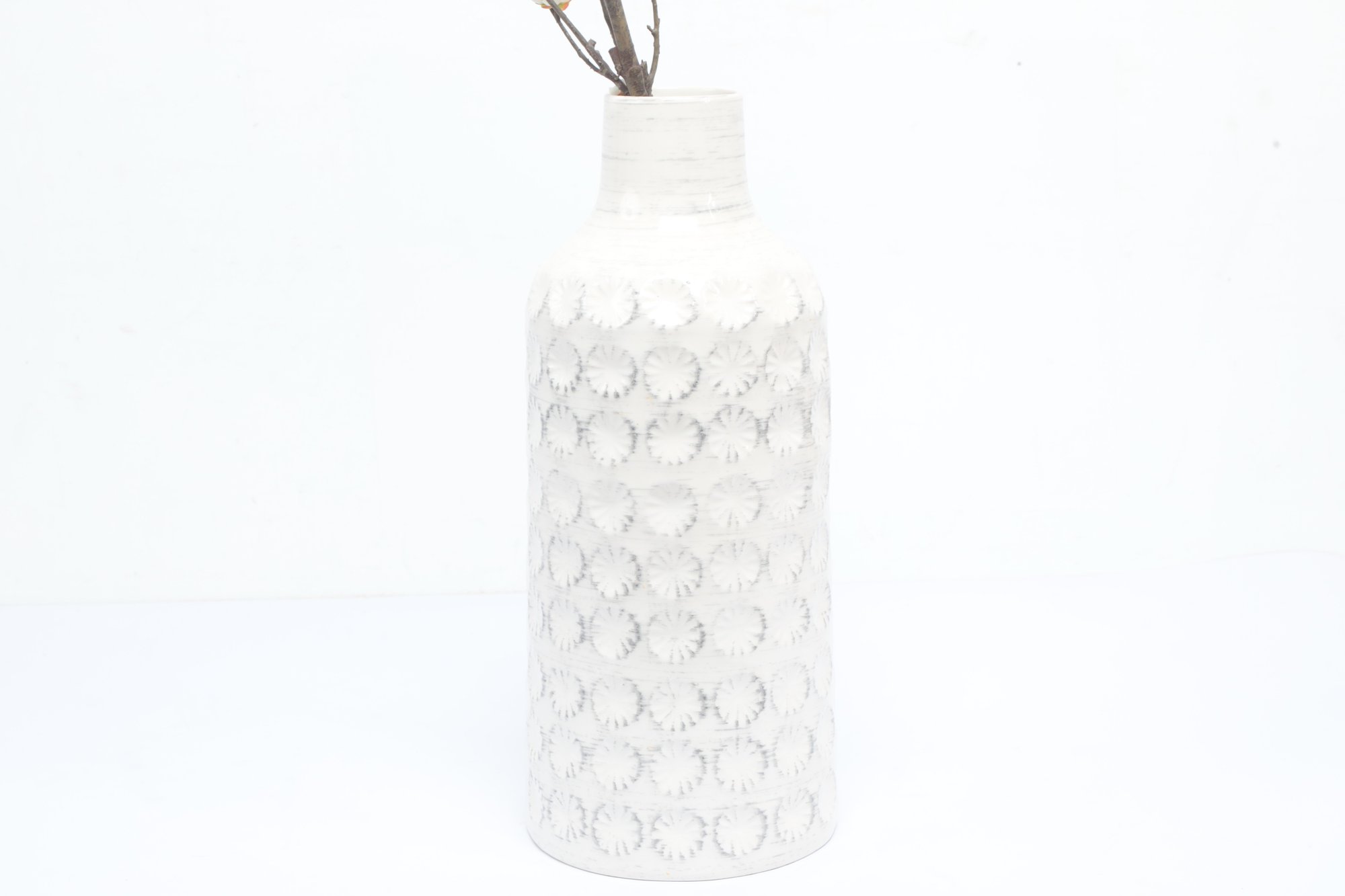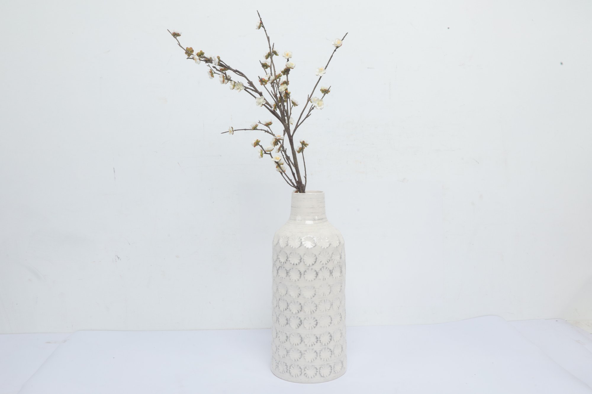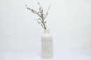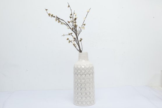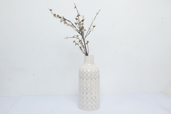 Crate & Barrel Vase And Artificial Cherry Blossom Branch. Vase is approximately 18" tall. See pictures carefully for details on size and condition.