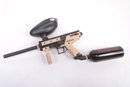 Paintball gun appears to be in good cosmetic condition. It is untested. Comes with CO2 tank and reservoir for paintballs.