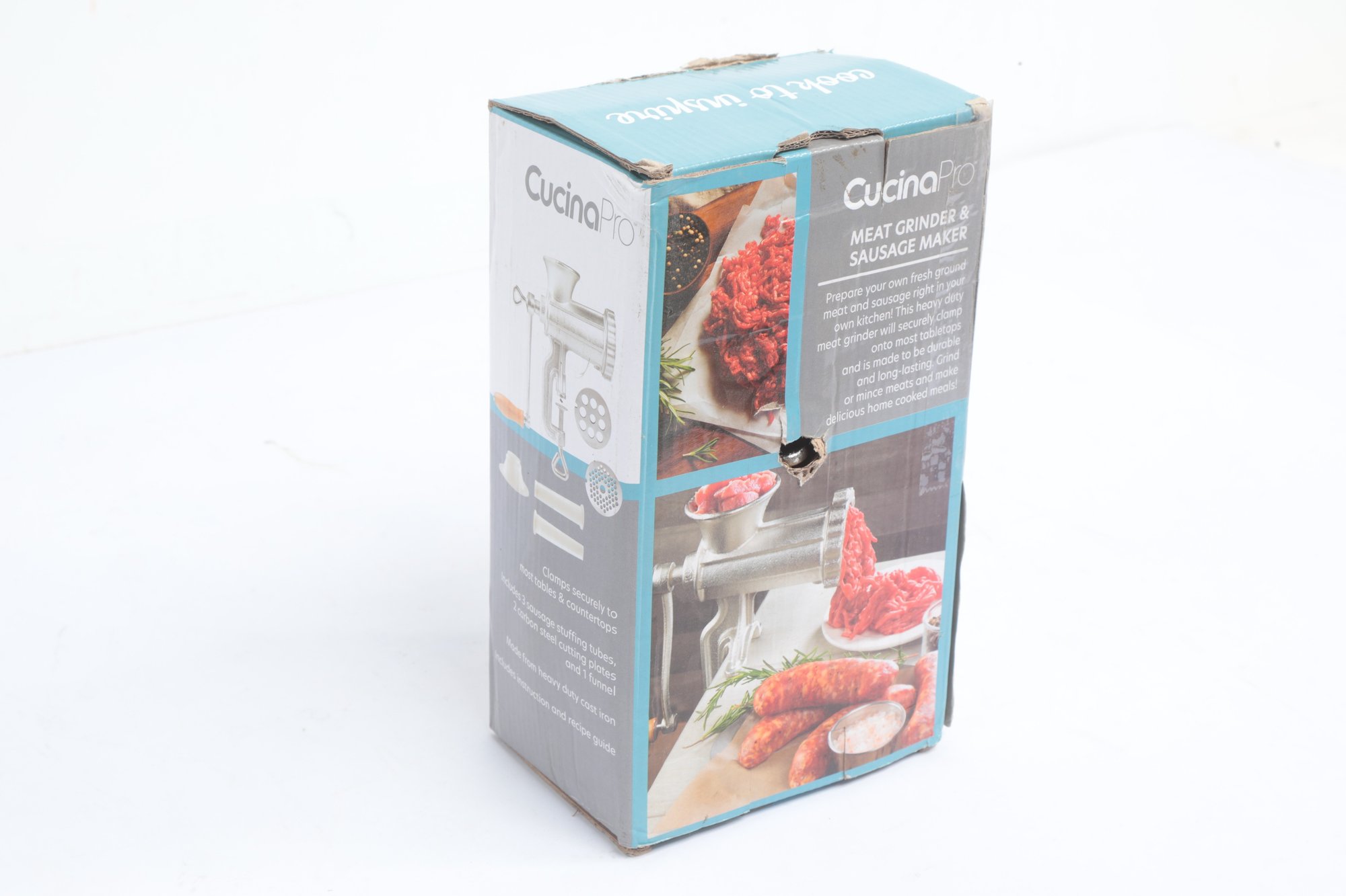 CucinaPro Meat Grinder And Sausage Maker lightly used in original box. Appears complete, see pictures carefully for details on contents included and condition.