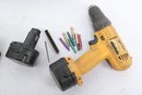 Dewalt Cordless Drill with carry case. Drill is untested, sold as is. See pictures carefully for details on contents included and condition.