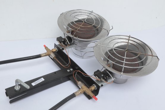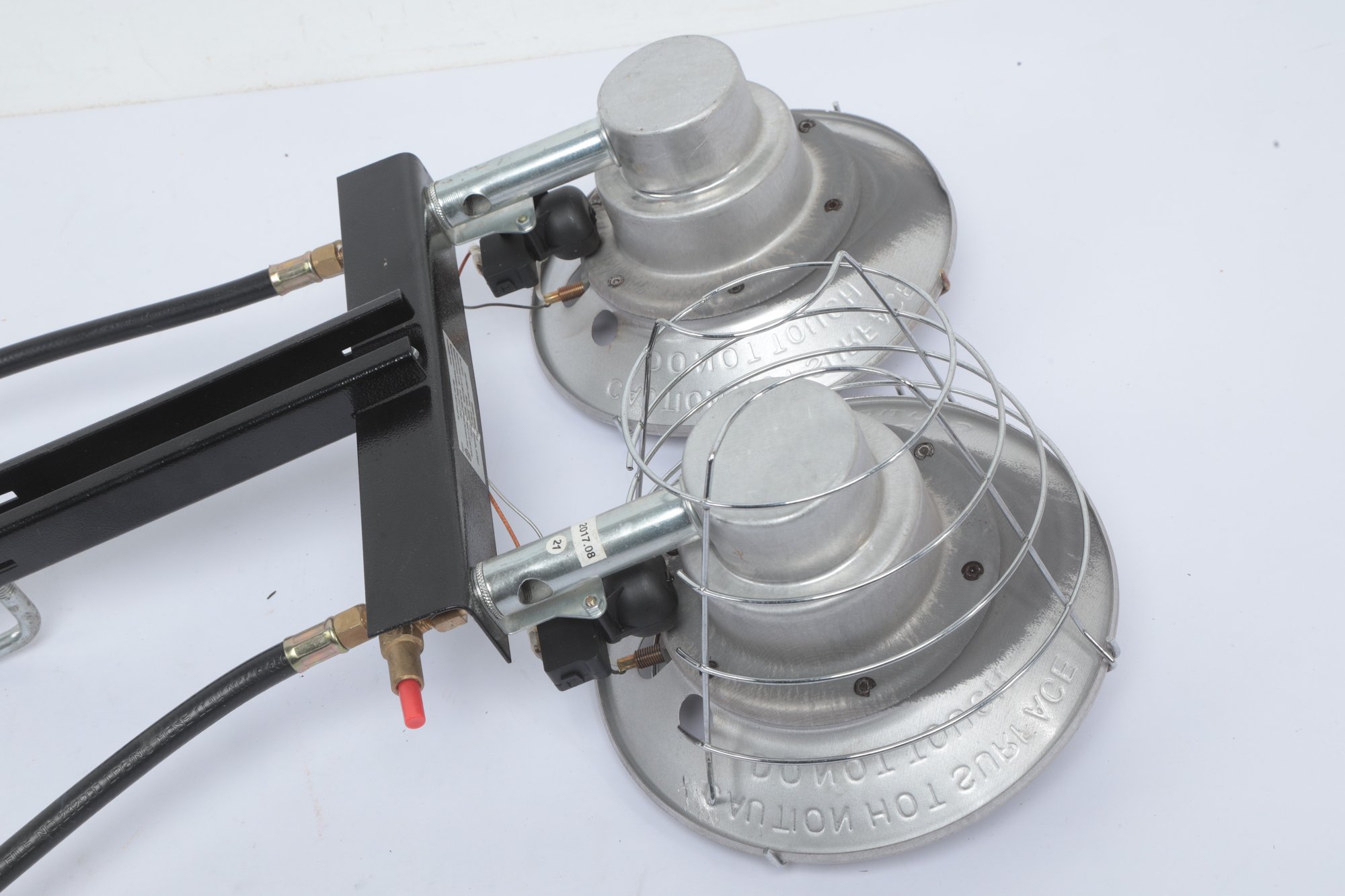 Double Burner Propane Tank Top Heater untested sold as is. See pictures carefully for details on size and condition.