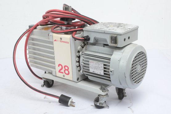 Edwards E2M28 Rotary Vane Vacuum Pump untested, sold as is. See pictures carefully for details on size and condition.