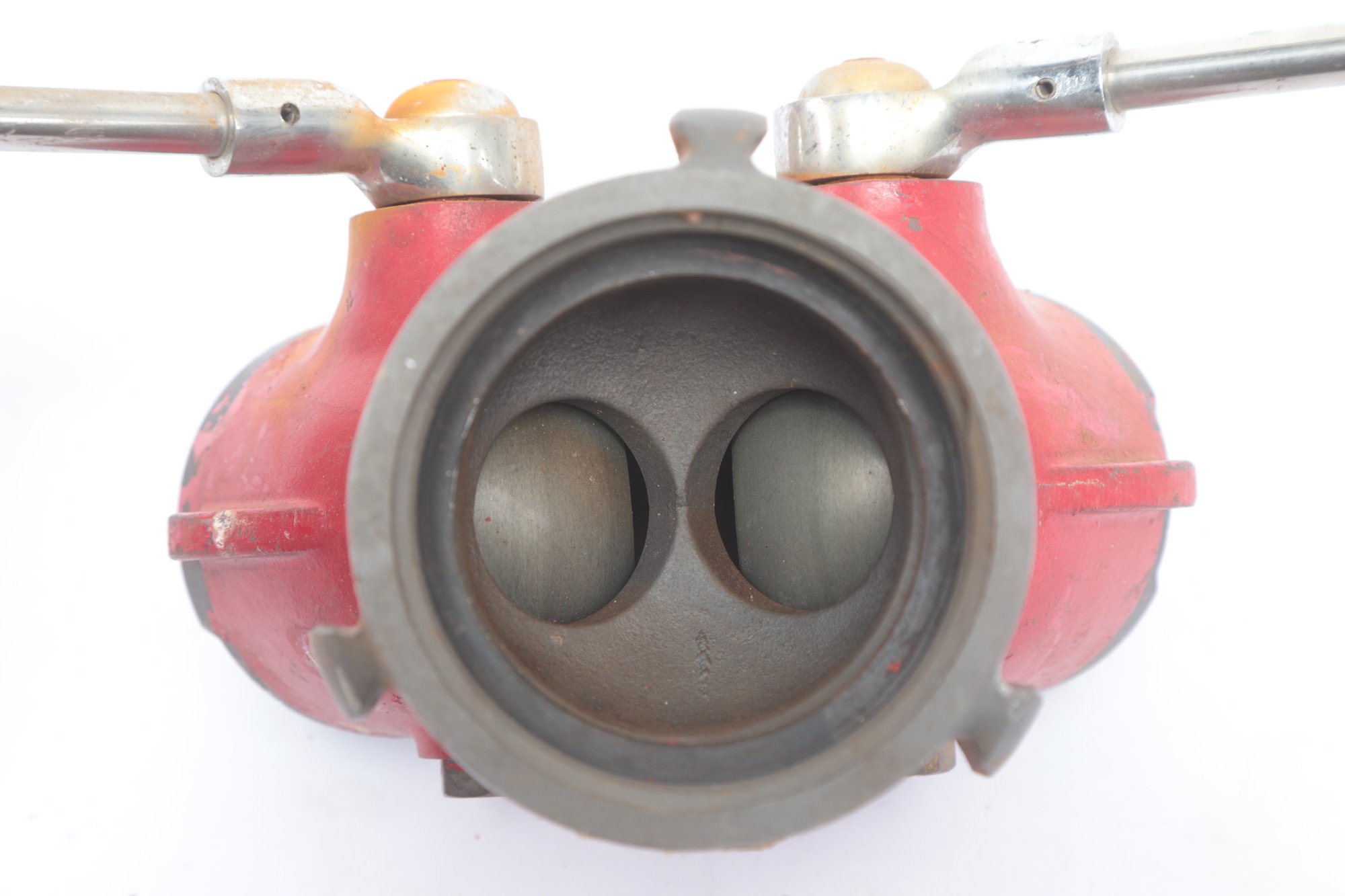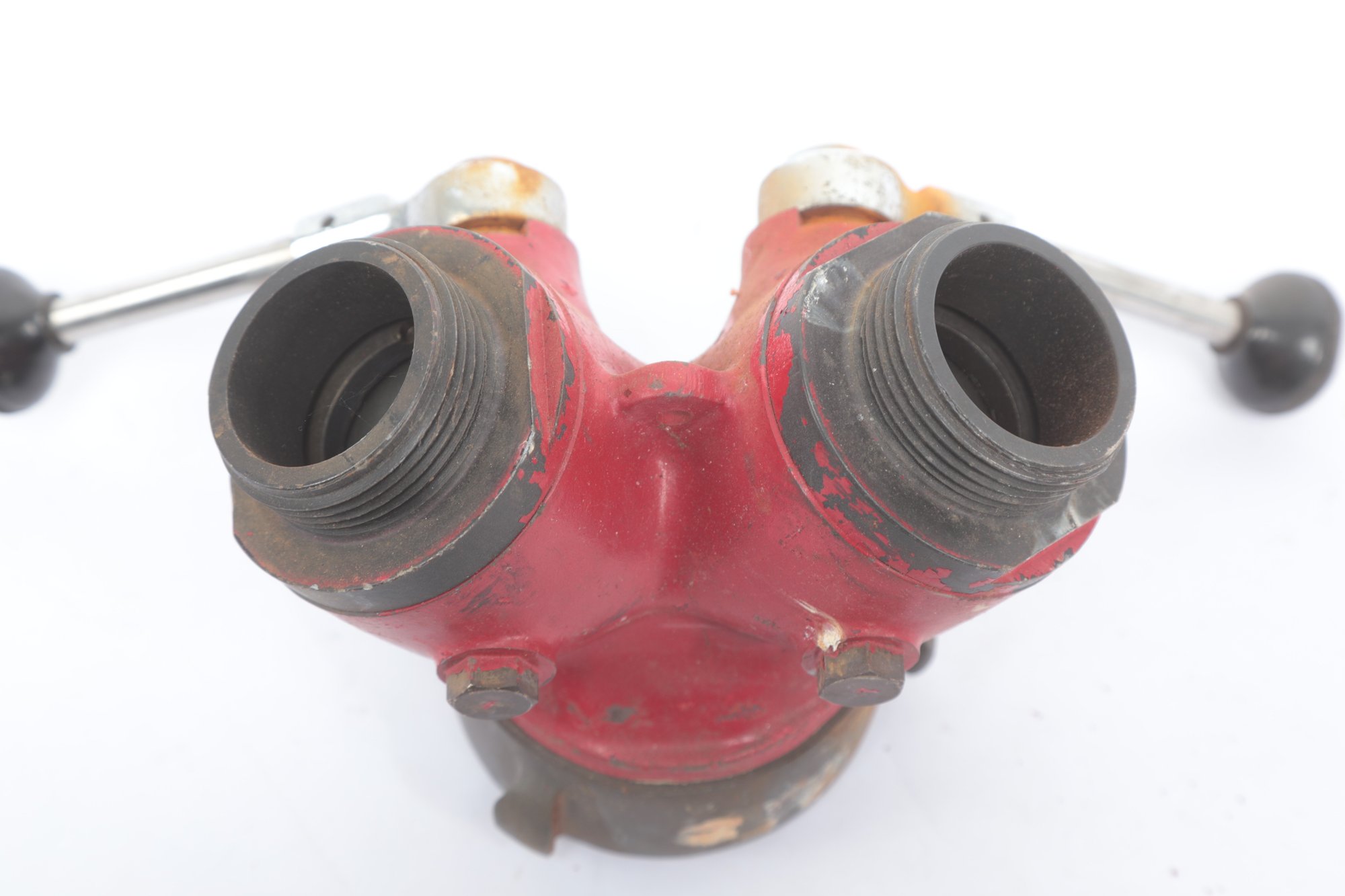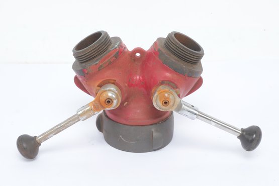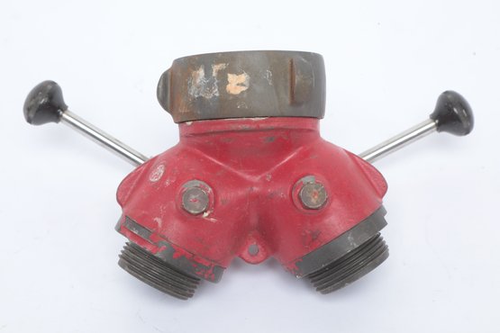 Elkhart Brass Fire Hose Gated WYE Valve with wear consistent with age and use. See pictures carefully for details on size and condition.