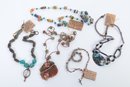 From a long-ago California artisan jeweller, 4 necklaces made with copper, Labradorite, jasper, abalone. etc.View all photos for condition before bidding.