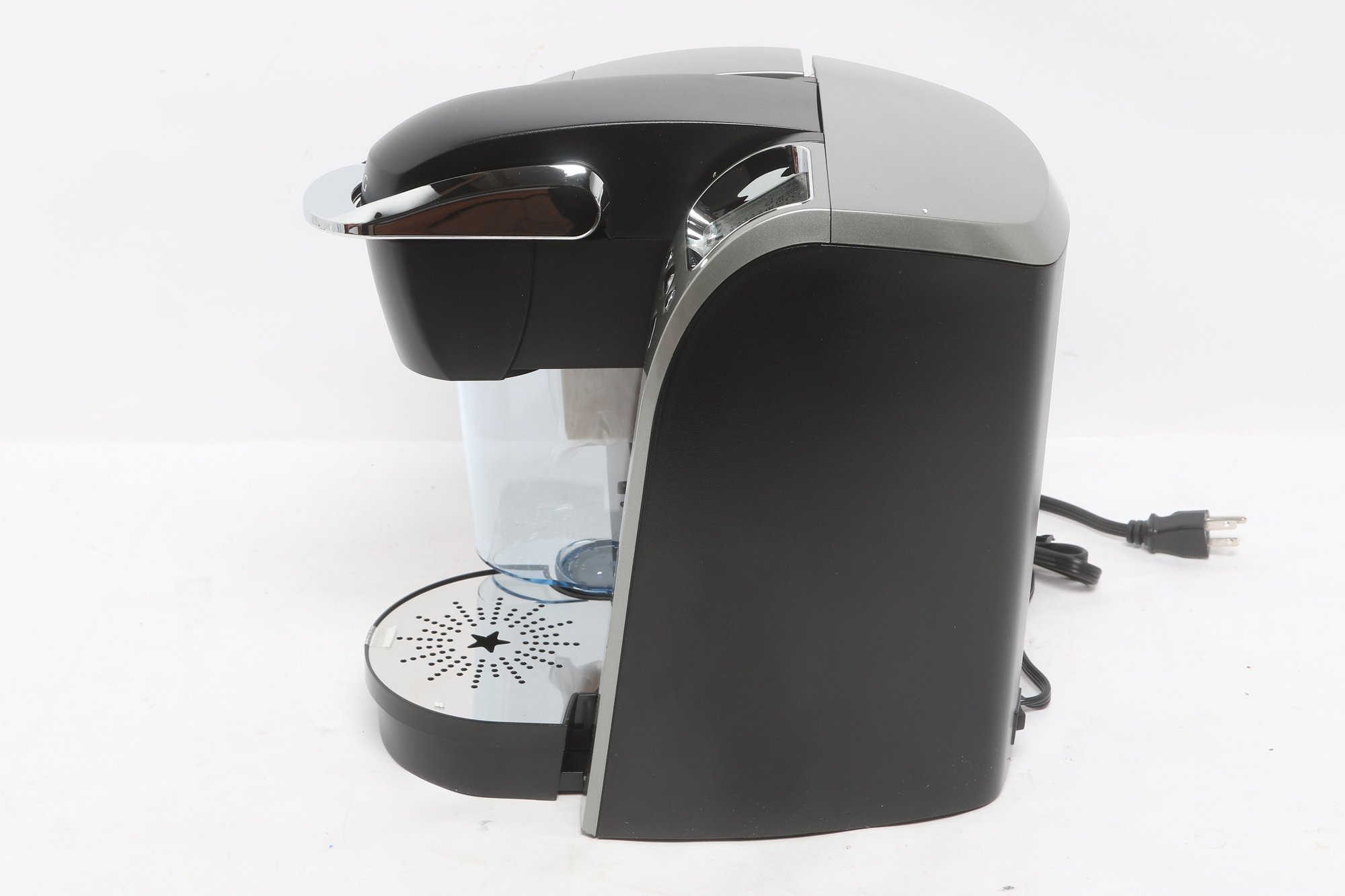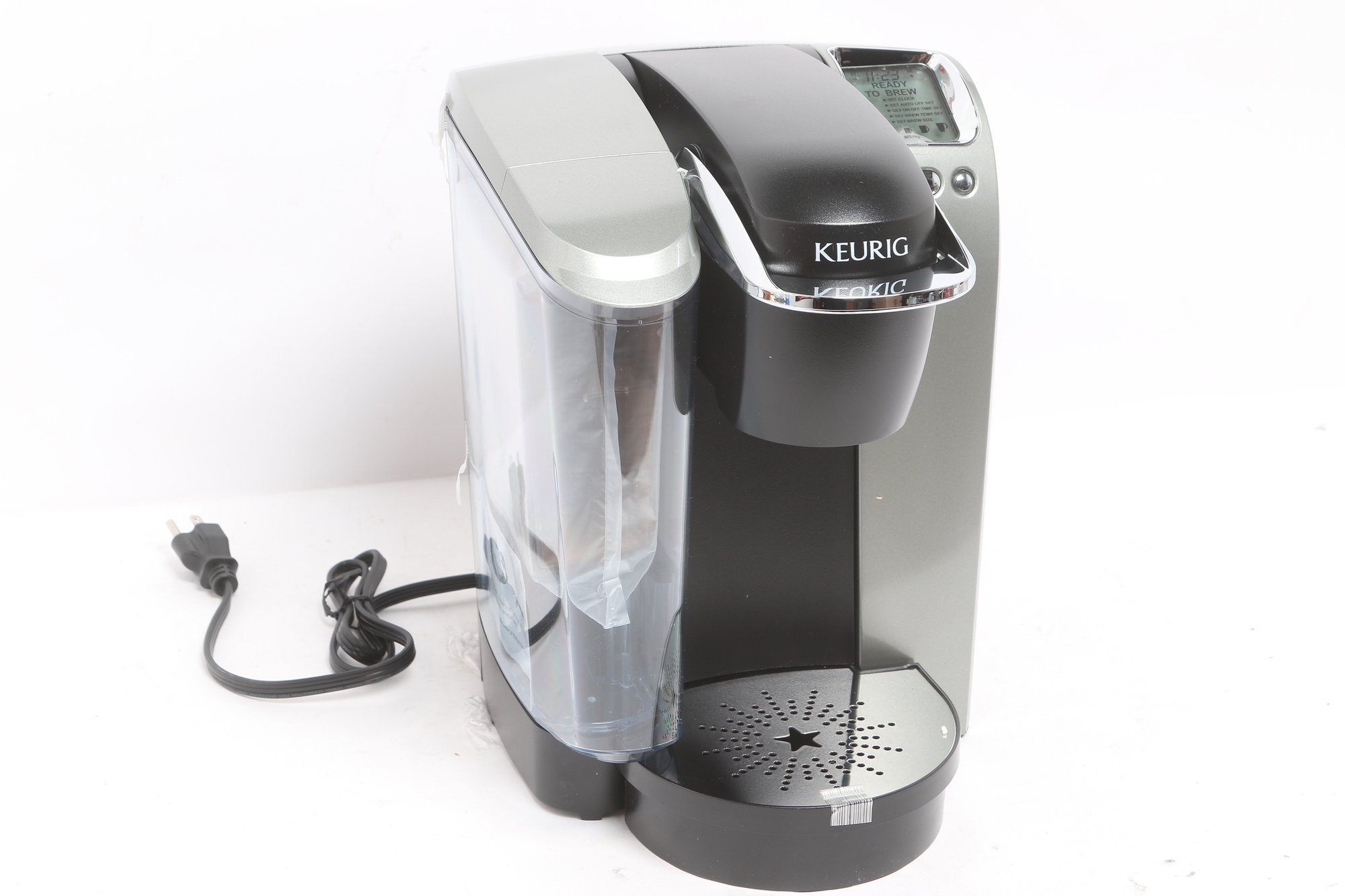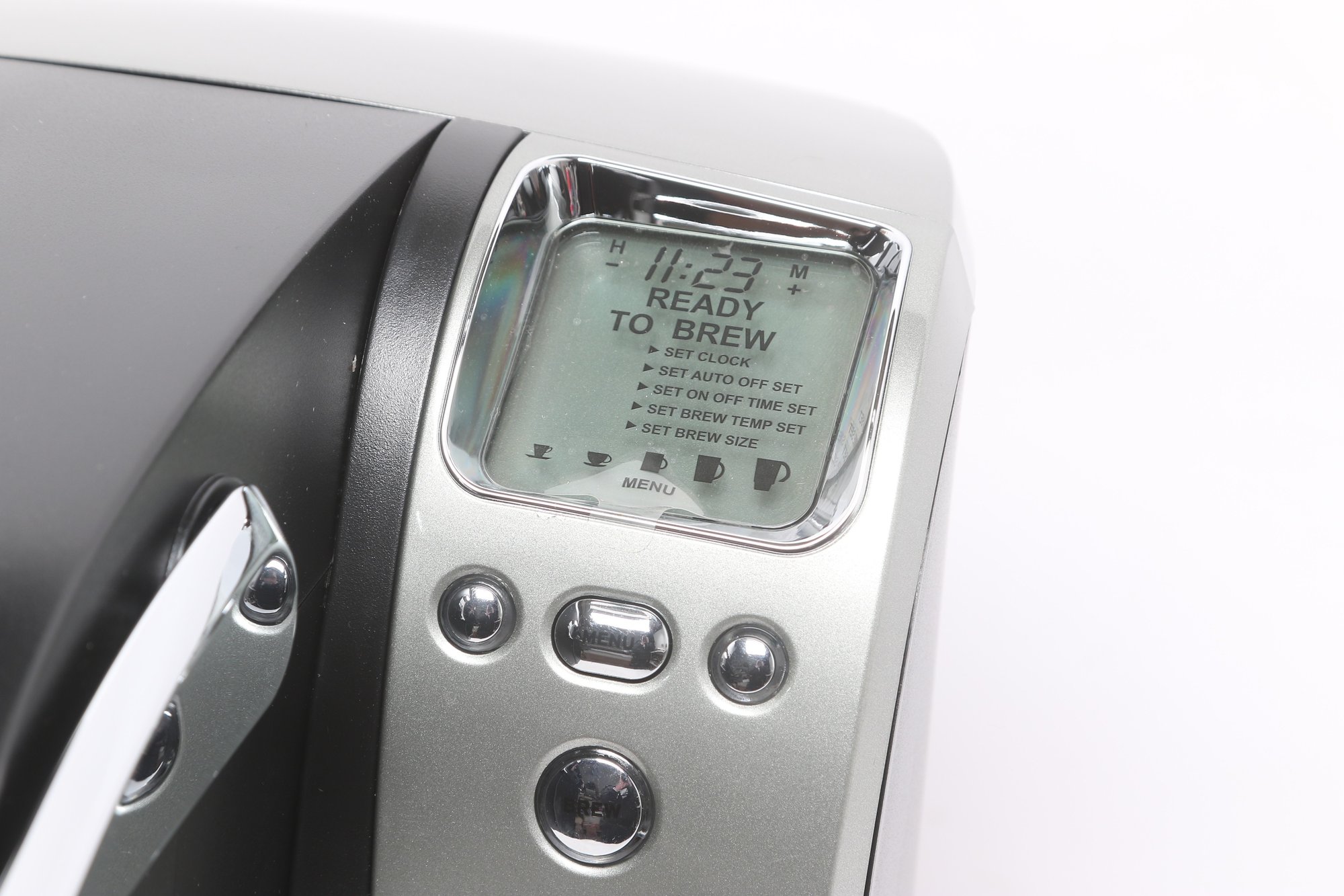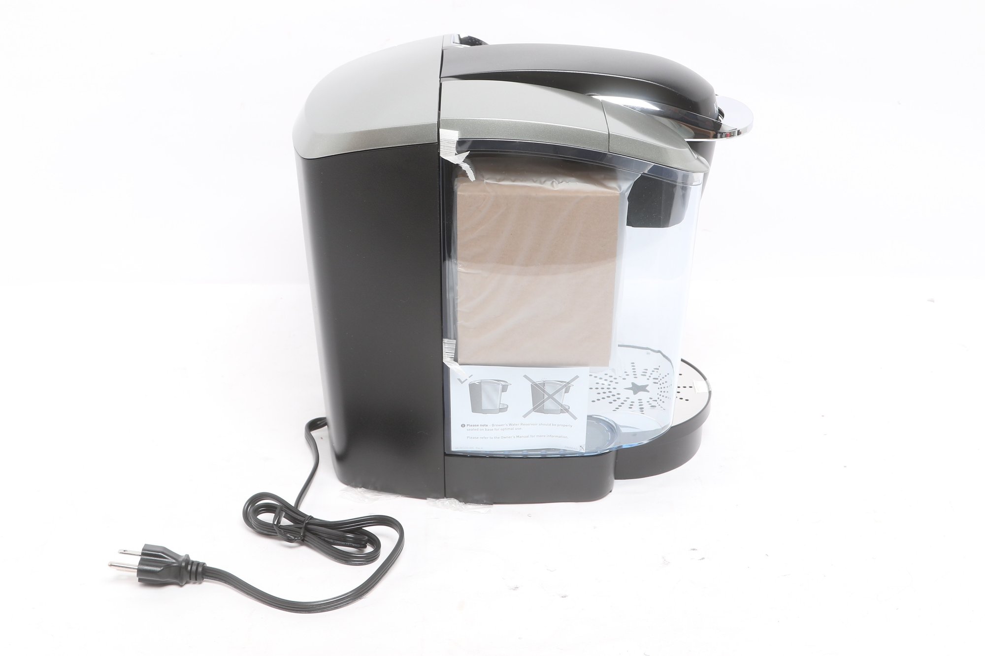 New with open box Keurig B70 WR Platinum single cup coffee maker featuring programmable settings, multiple brew sizes, and a large removable water reservoir. Includes power cord and original box as shown.
