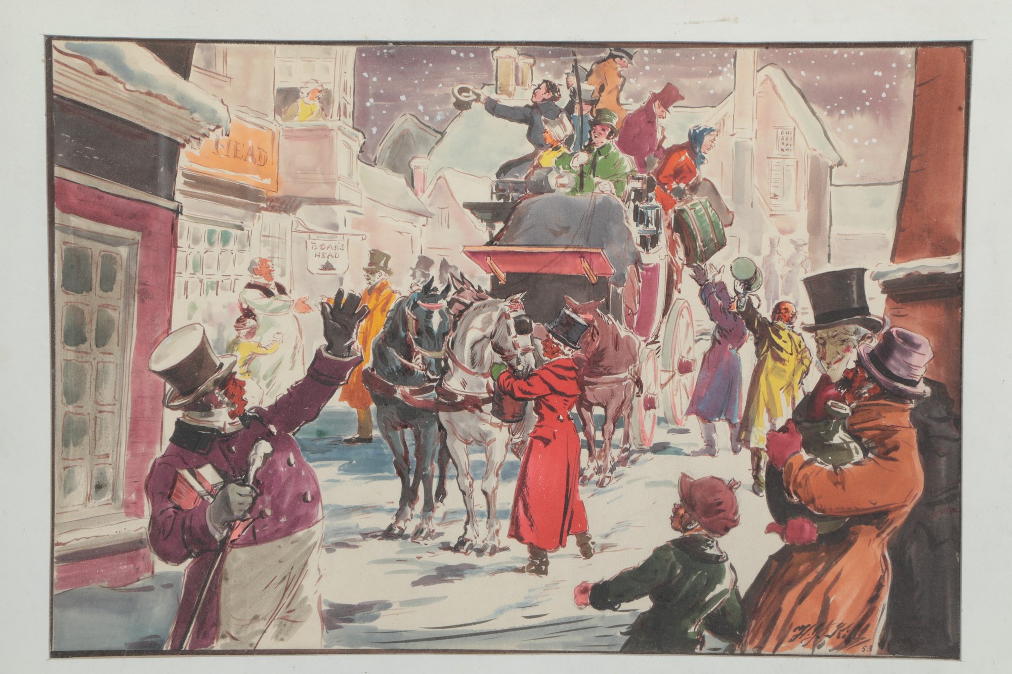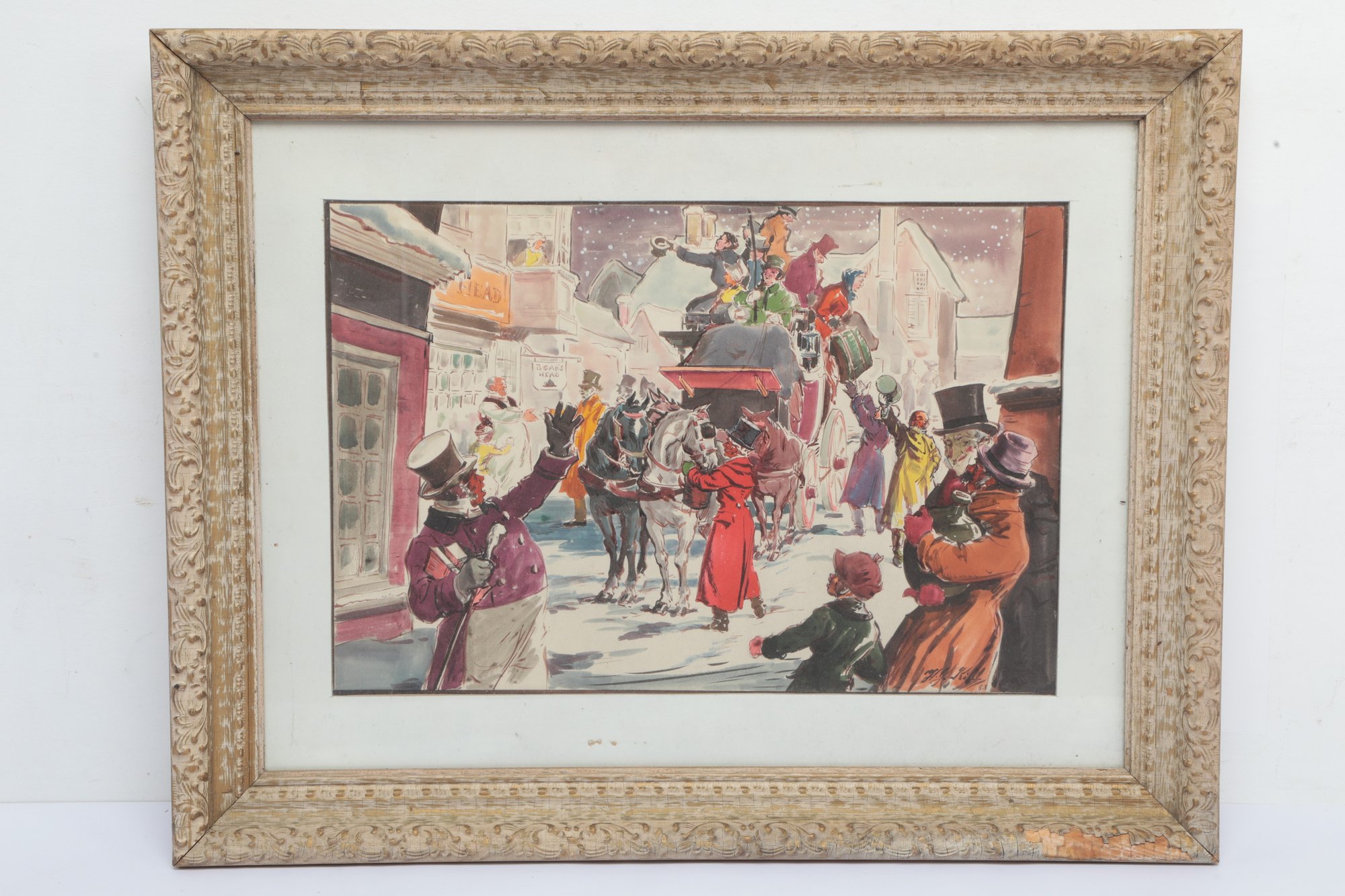 Framed Print Victorian Winter Scene. Measures approximately 28" x 22". See pictures carefully for details