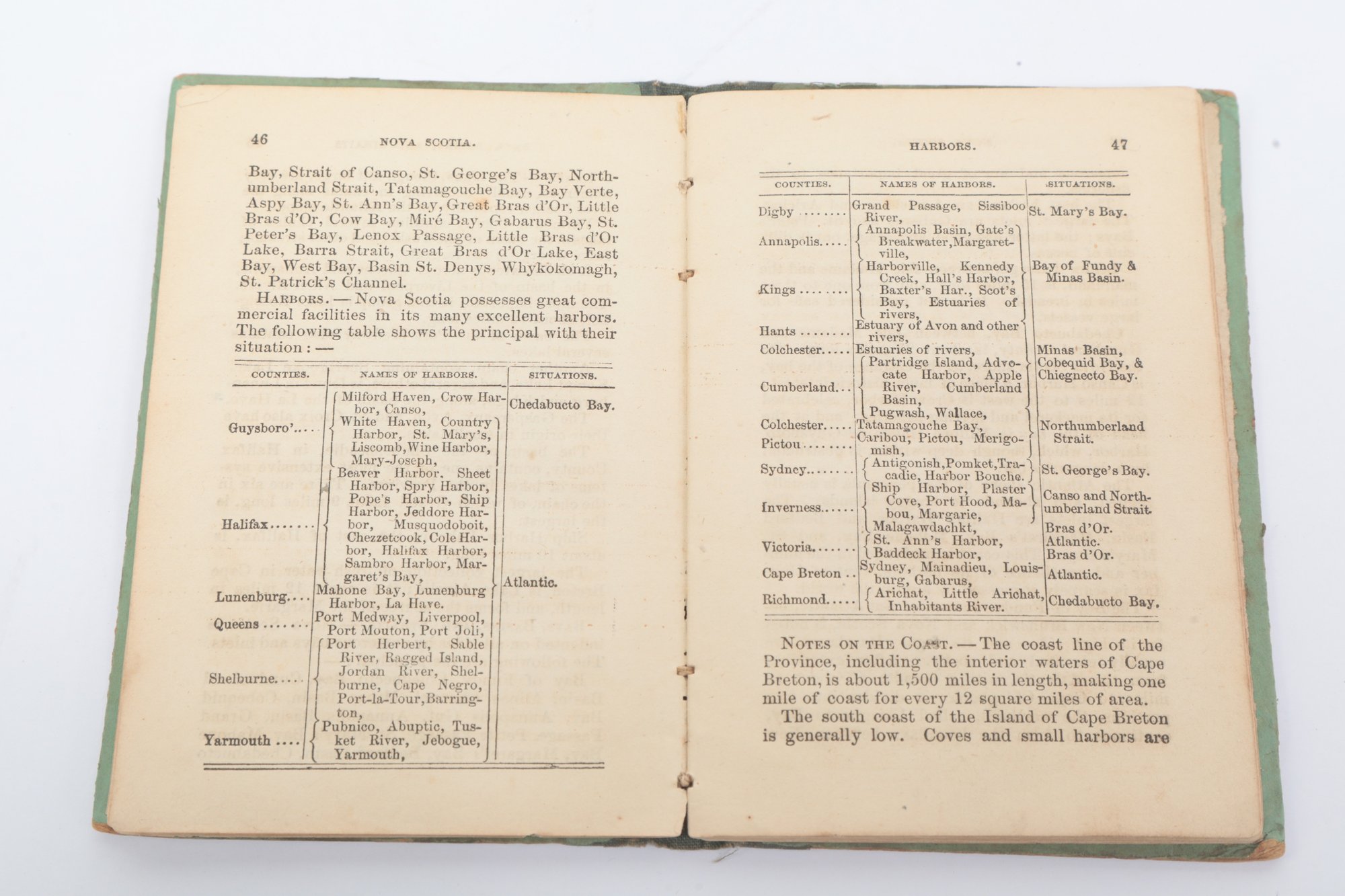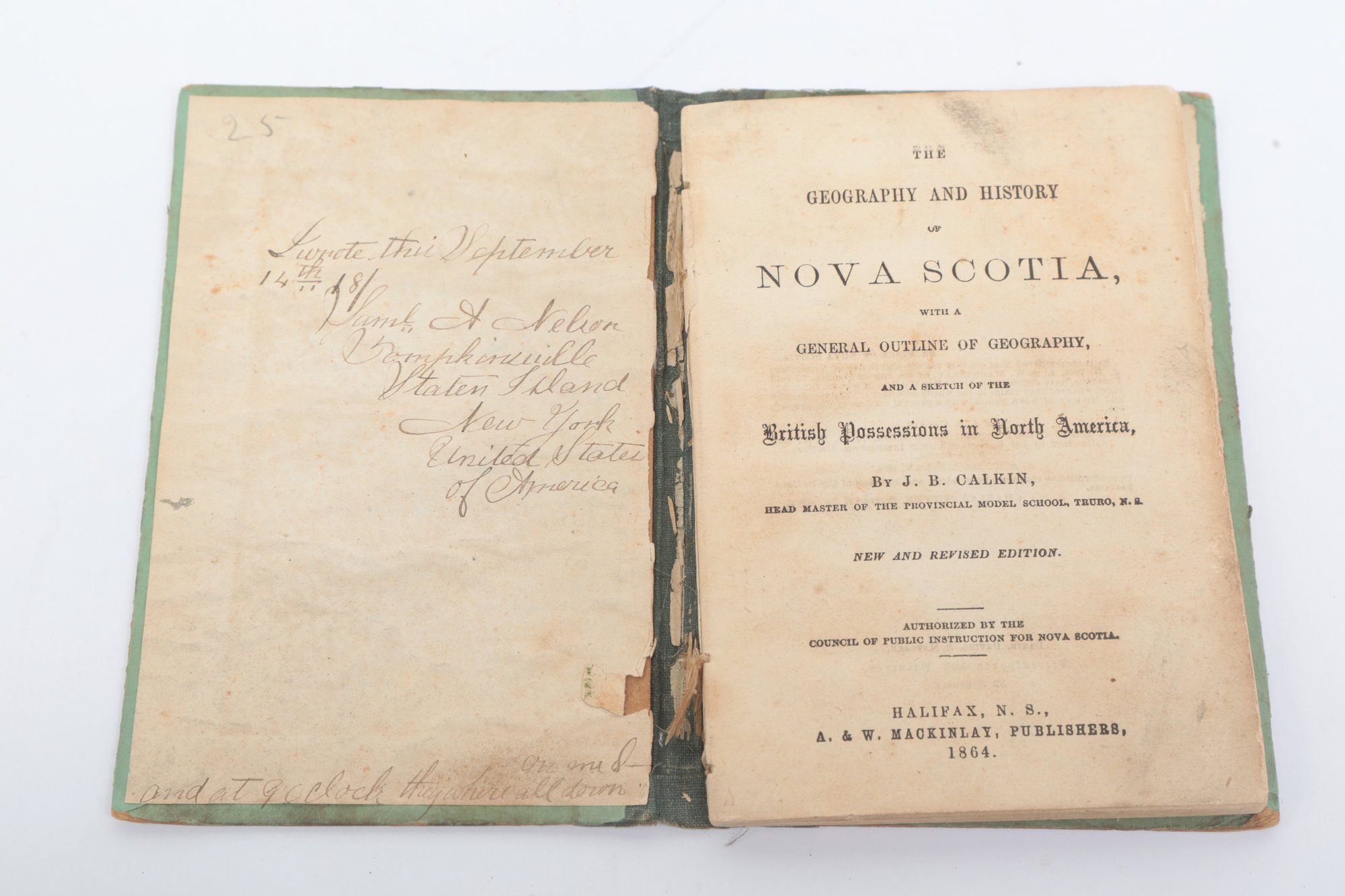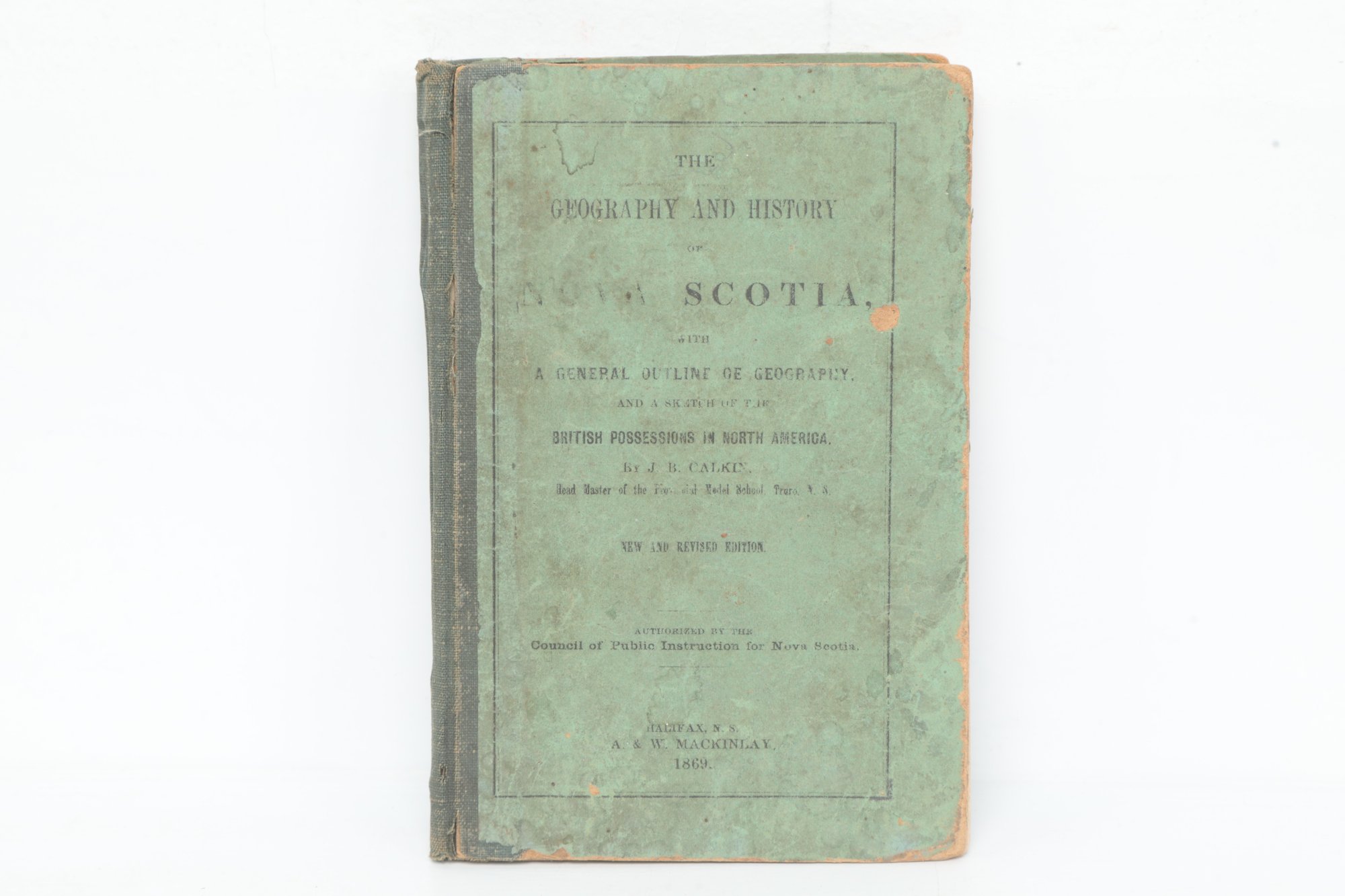 CALKIN, J. B. The Geography and History of Nova Scotia, with a General Outline of Geography, and a Sketch of the British Possessions in North America. New and Revised Edition. Authorized by the Council of Public Instruction for Nova Scotia. Halifax, N.S.: A. & W. Mackinlay, 1864 [cover: 1869].
