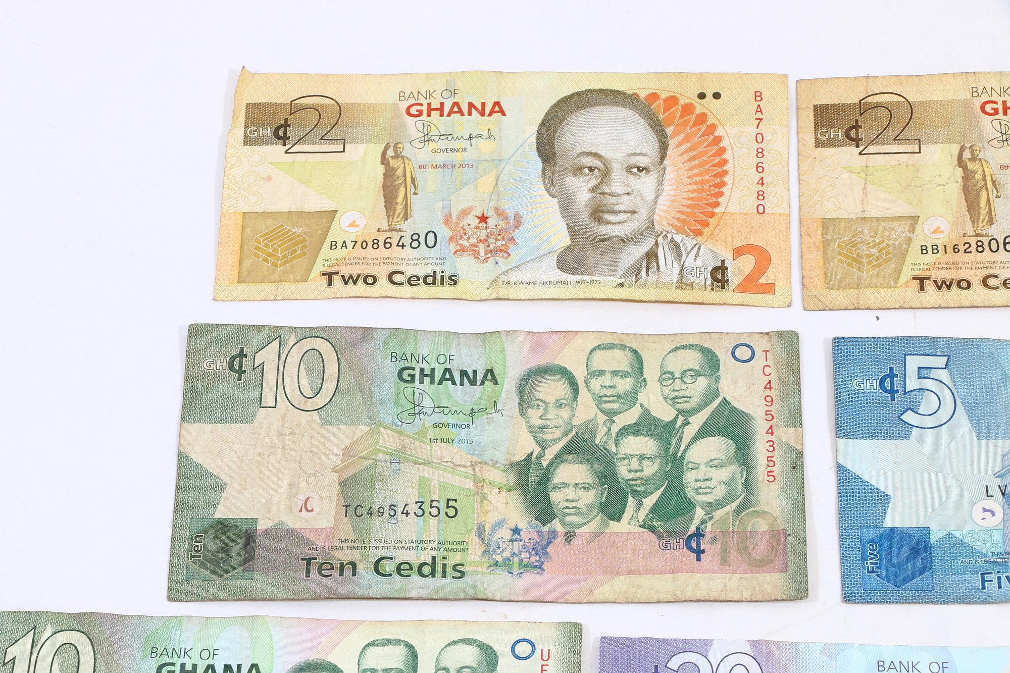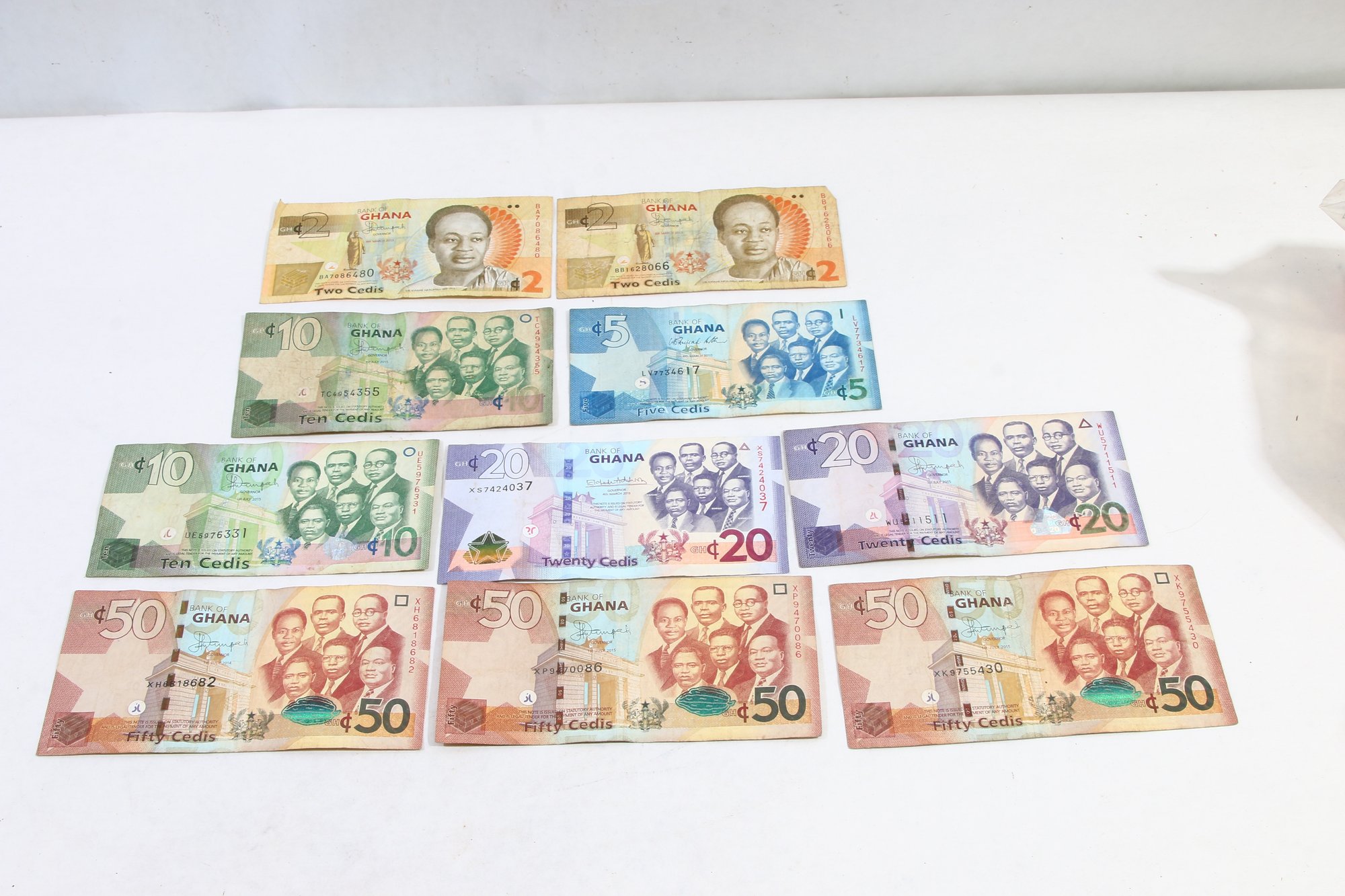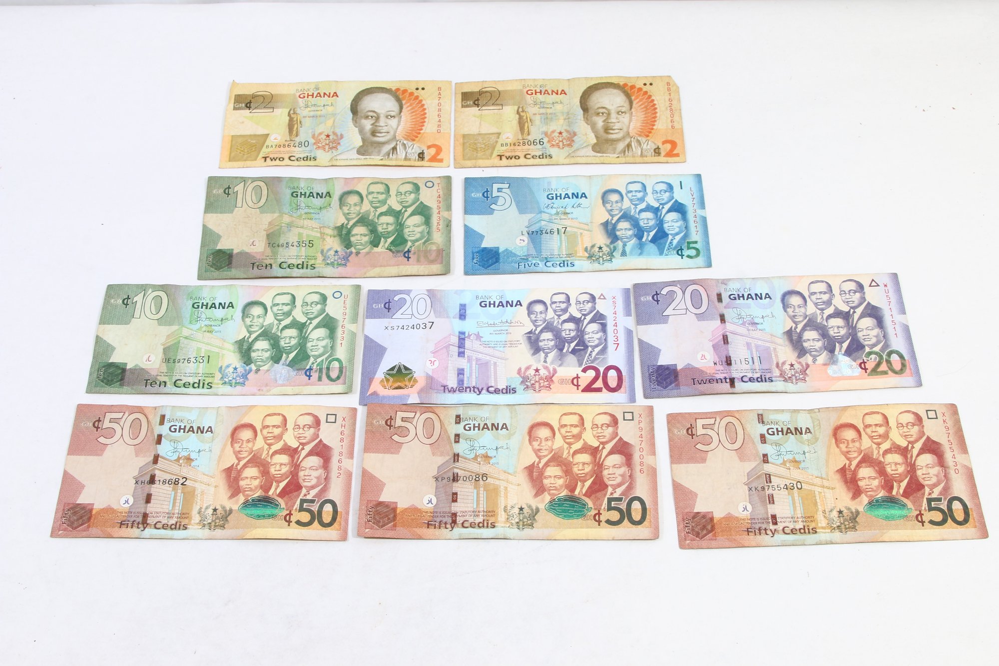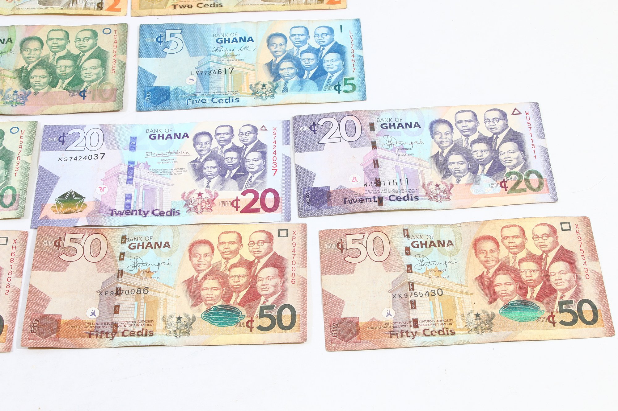 GHANA PAPER MONEY TOTAL OF 219 CEDIS - GROUP OF 10 NOTES
