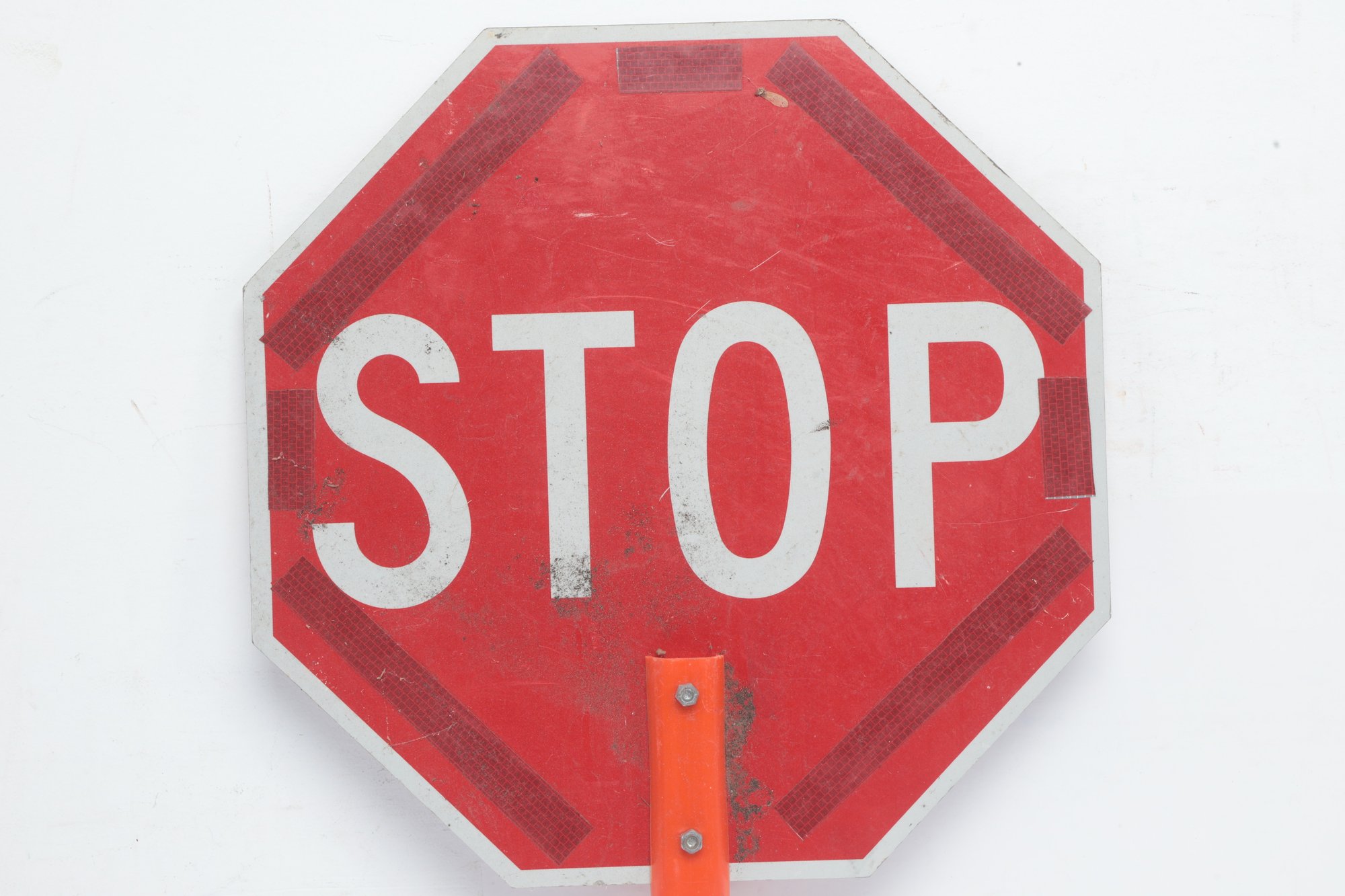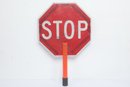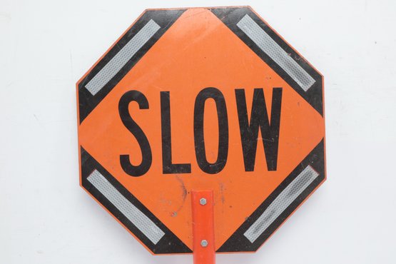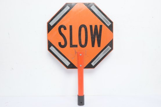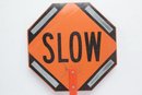 Handheld Reversible Stop Slow Paddle Traffic Sign. Could use cleaning, have some wear from use. Can also be mounted on poles. See pictures carefully for details on size and condition.